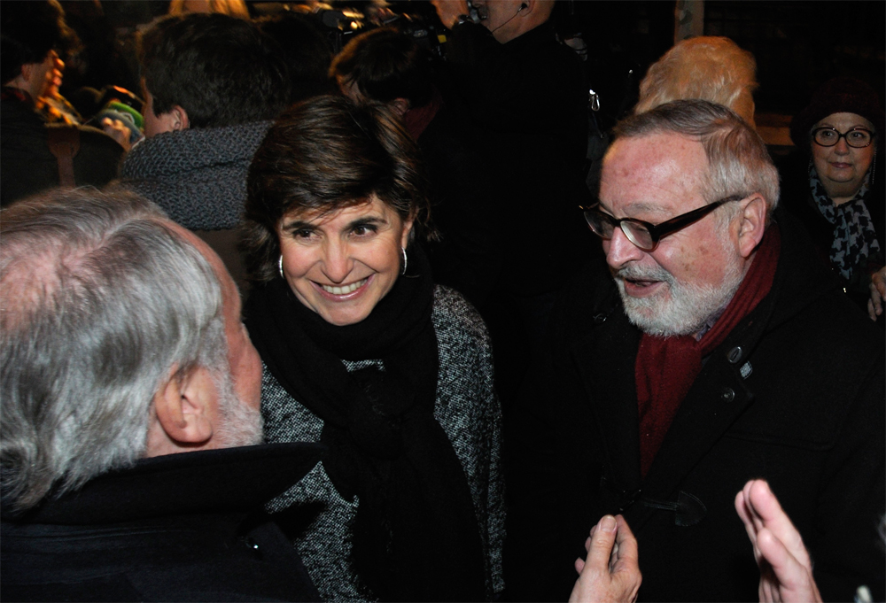 Entre el público asistente se encontraba María San Gil y Fernando Savater, que se saludan efusivamente.
