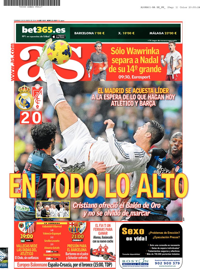 Portadas de los diarios El País, ABC, As y La Vanguardia.