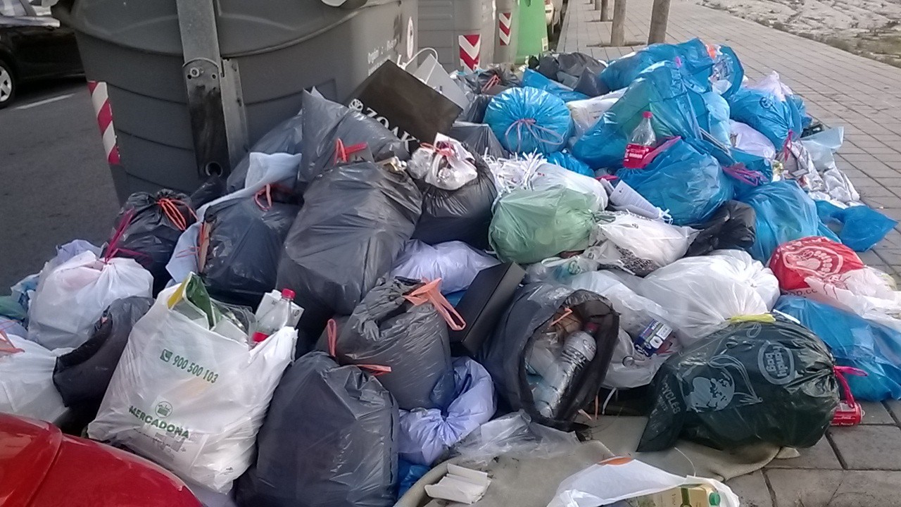 Una huelga en el servicio de recogidas de basura en Alicante ha hecho que se hayan acumulado en las calles hasta 1.400 toneladas de desperdicios. | F. Carrera