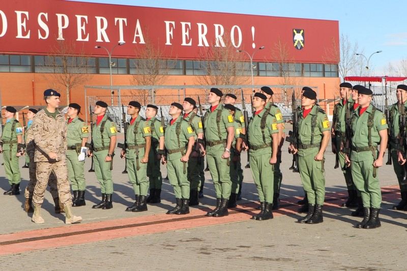 Militares de la BRIPAC desfilan en presencia del príncipe Felipe.