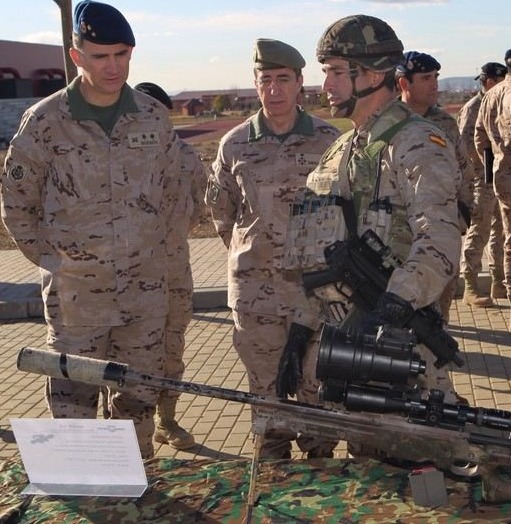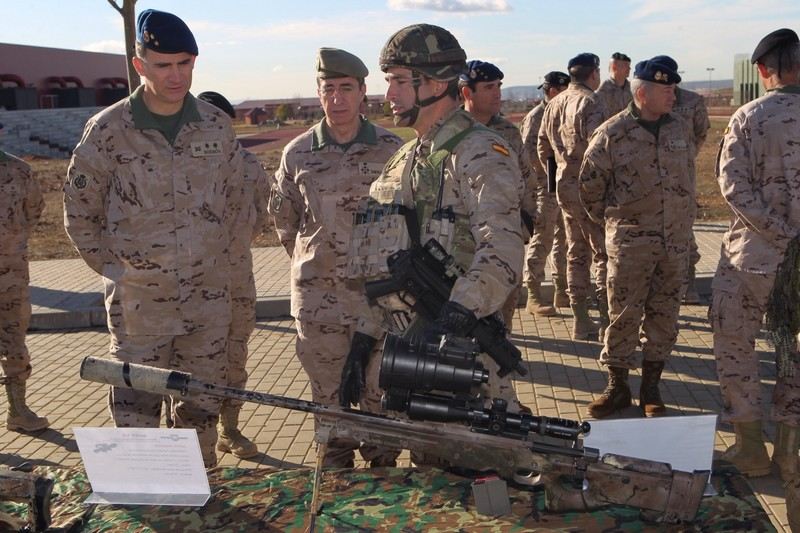 Un mando de la BRIPAC explica al Príncipe el funcionamiento del BORS V2, un ordenador balístico programable que se acopla al rifle de precisión Barret.