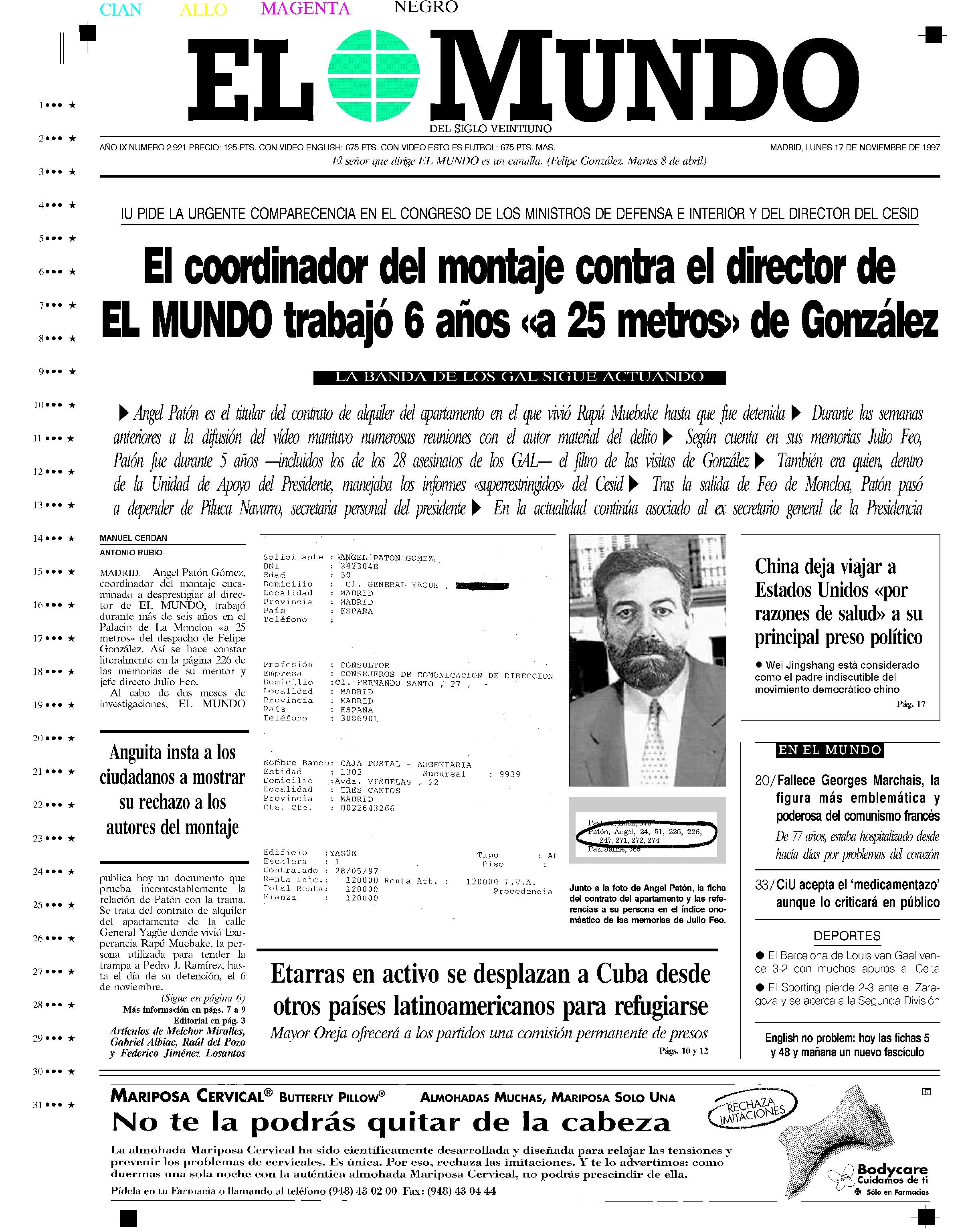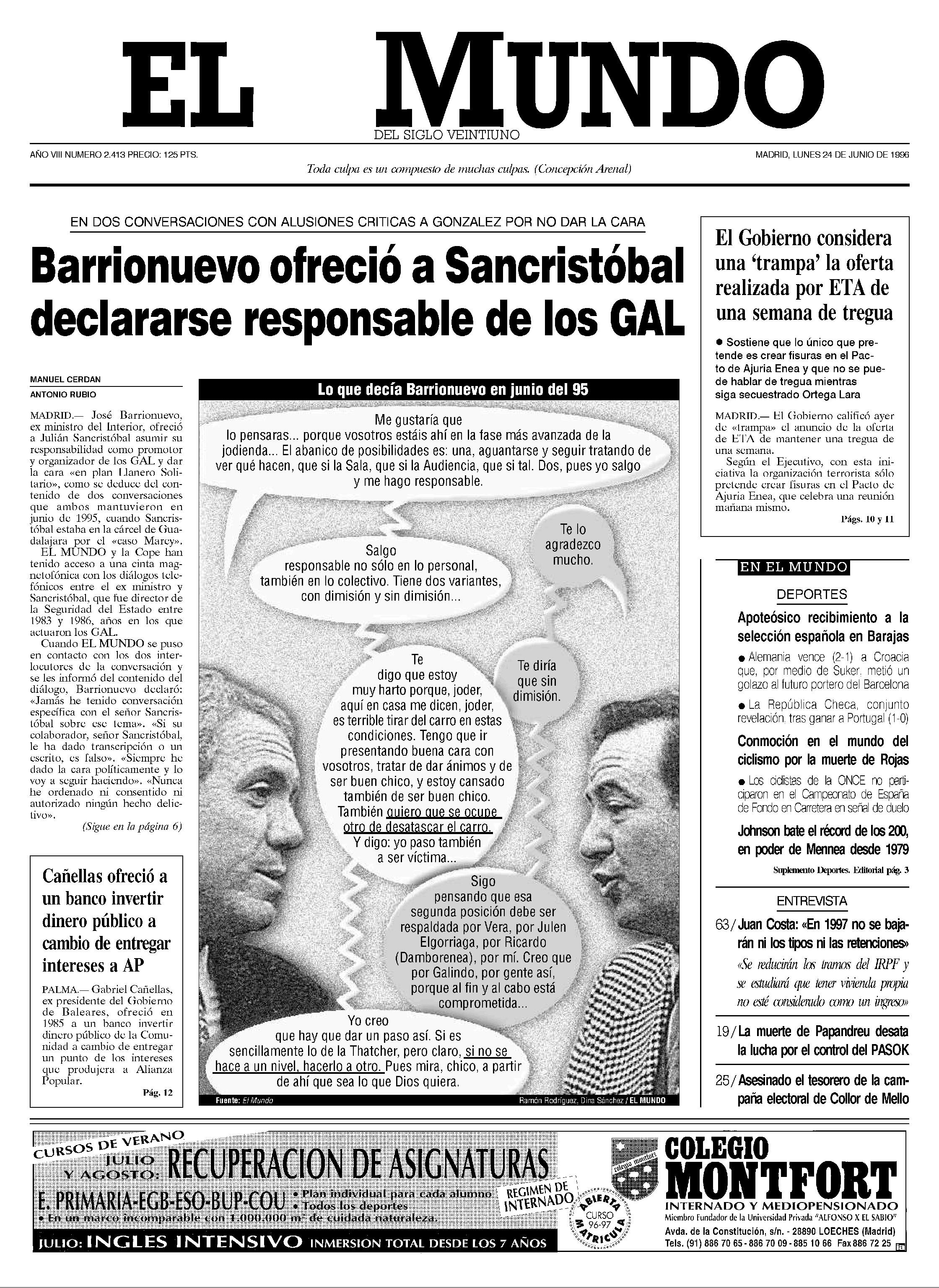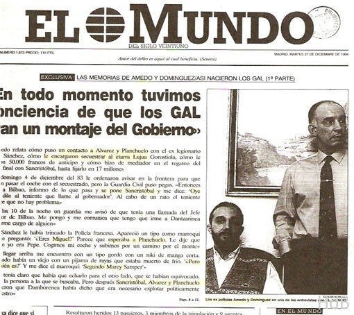 Amedo y Domínguez colaboraron con la justicia e implicaron al Gobierno en el montaje de los Gal. Meses después el diario El Mundo publicaba en exclusiva las memorias de Amedo y Domínguez donde se explicaba cómo nacieron los Gal.