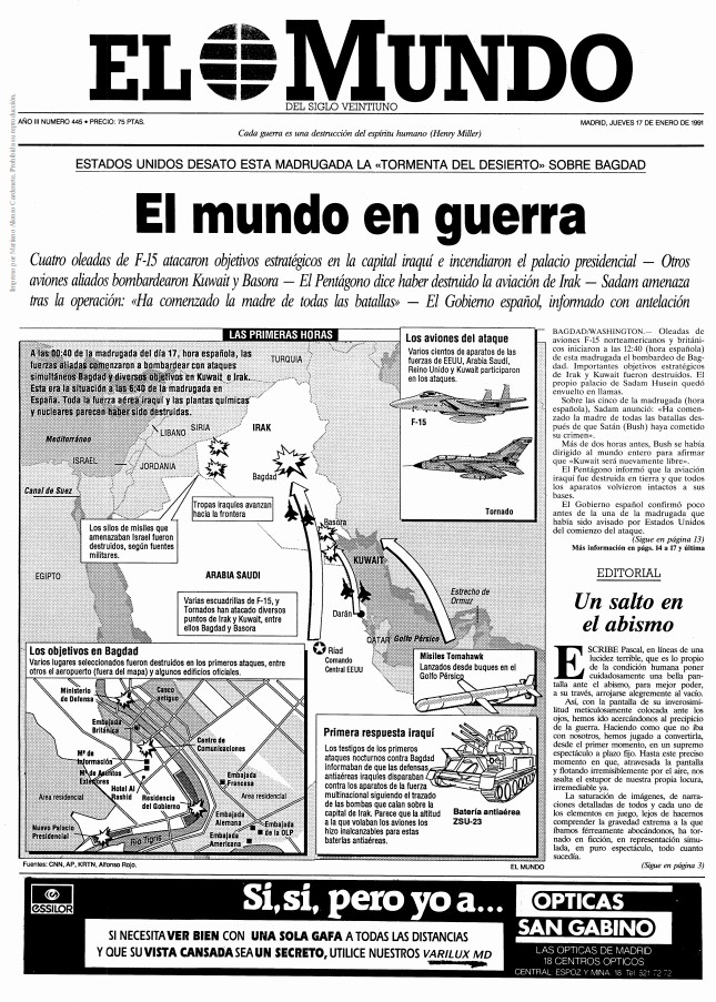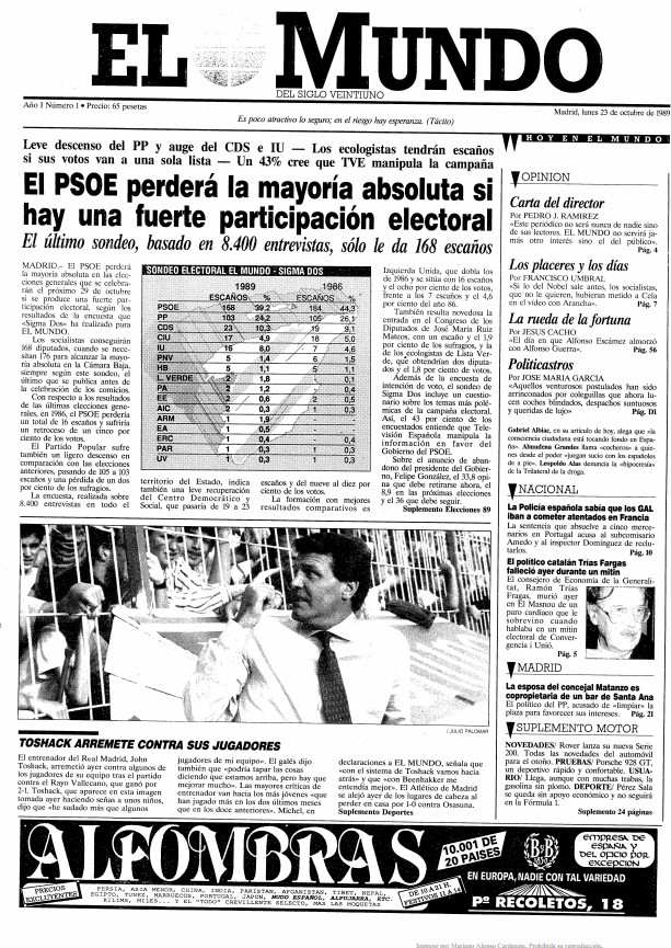 Selección de portadas del diario El Mundo en estos casi 25 años de historia. Desde su primer número el 23 de octubre de 1989 hasta los papeles de Bárcenas, pasando por las escuchas ilegales, Filesa o Corinna y la negociación con ETA.