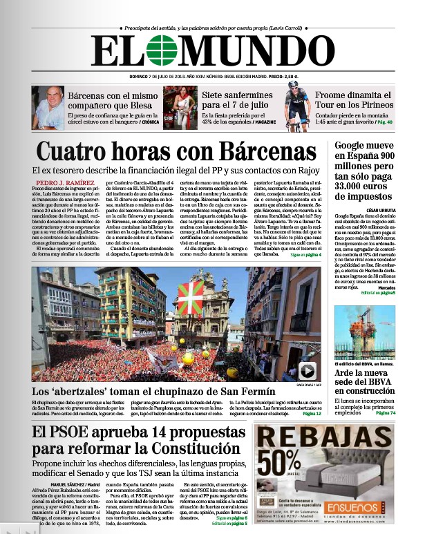 Coincidiendo con el "chupinazo" de San Fermín, Pedro J. Ramírez publica sus "cuatro horas con Bárcenas", la entrevista que mantuvo con el extesorero del PP.