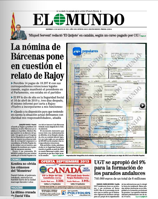 Además de los papeles, los SMS y las cuatro horas con Bárcenas, El Mundo publicó su nómina.