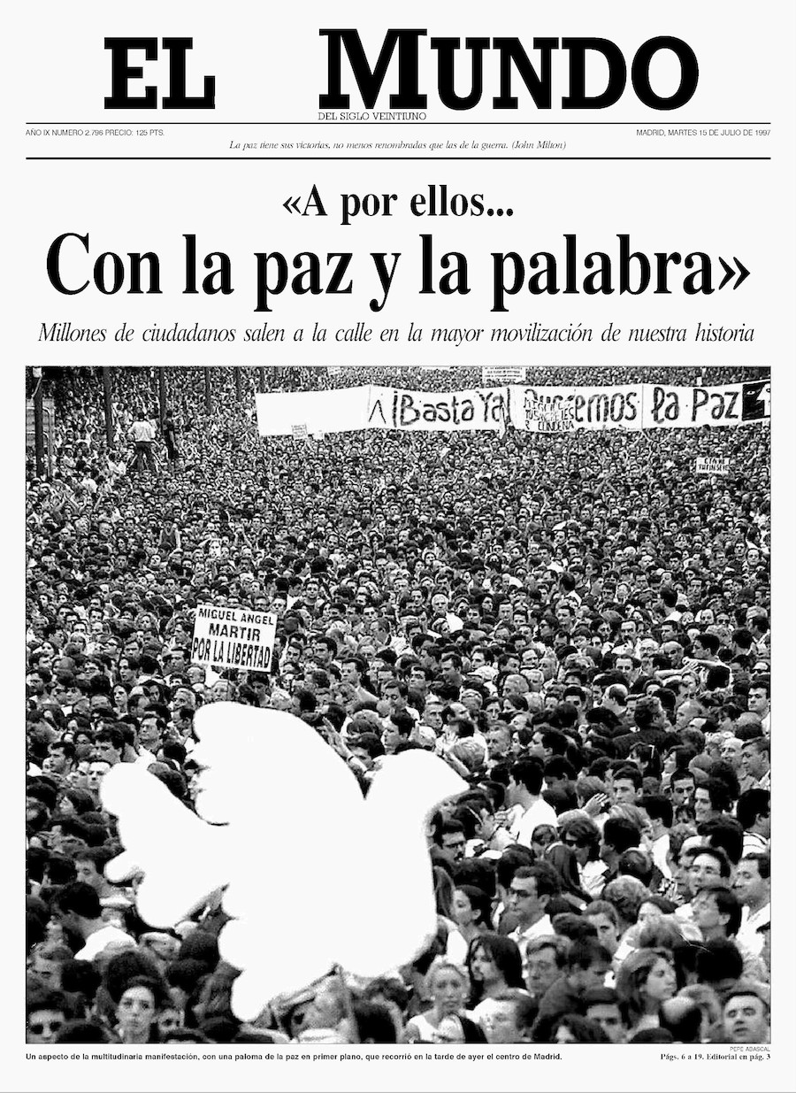 La mayor manifestación de la historia de España, hasta la fecha, fue contra el terrorismo de ETA y tras el asesinato de Miguel Ángel Blanco.
