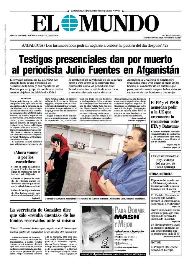 Muere el periodista de El Mundo Julio Fuentes en Afganistán.