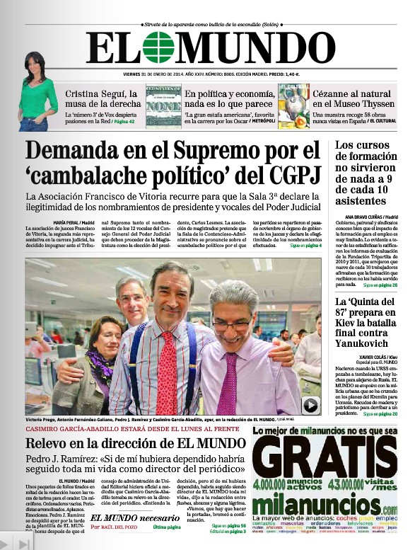 Portada del diario El Mundo con el relevo en la dirección del diario.
