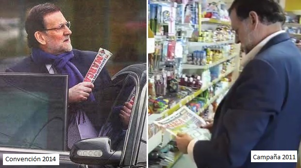 No es la primera vez que el presidente es inmortalizado con el diario deportivo entre las manos. La última vez, en 2011, el PP utilizó esta imagen de Rajoy con el Marca como una estrategia para hacer al presidente "más cercano".