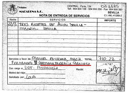 El 22 de marzo de 2008, Manuel Pastrana, entonces secretario general de UGT Andalucía, su esposa, María Fernández Doménech, y la esposa de Gaspar Zarrías, Germana Engracia Caballero López, volaban a Madrid en vuelo de Iberia y los billetes -de ida y vuelta- tenían la fecha de regreso dos el día 31 de marzo, y uno, el día 30. Esto es, era un viaje de 9 días de duración. La cuestión es que dicho viaje originó dos facturas distintas.