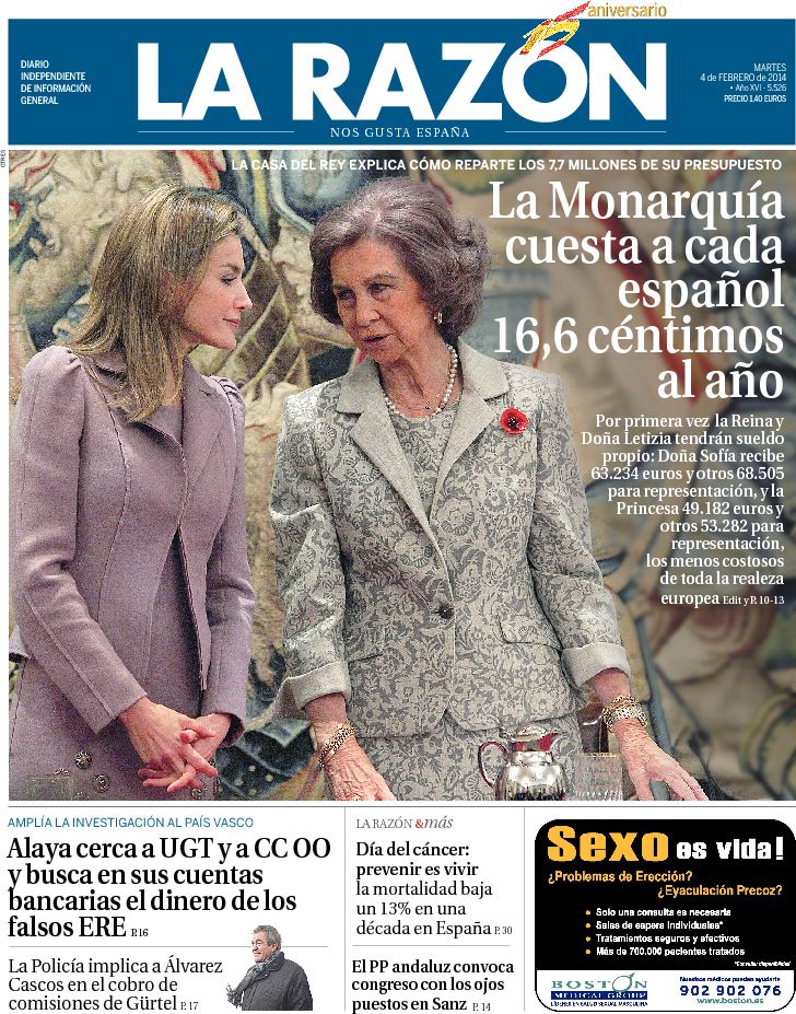 "La Monarquía cuesta a cada español 16,6 céntimos al año"