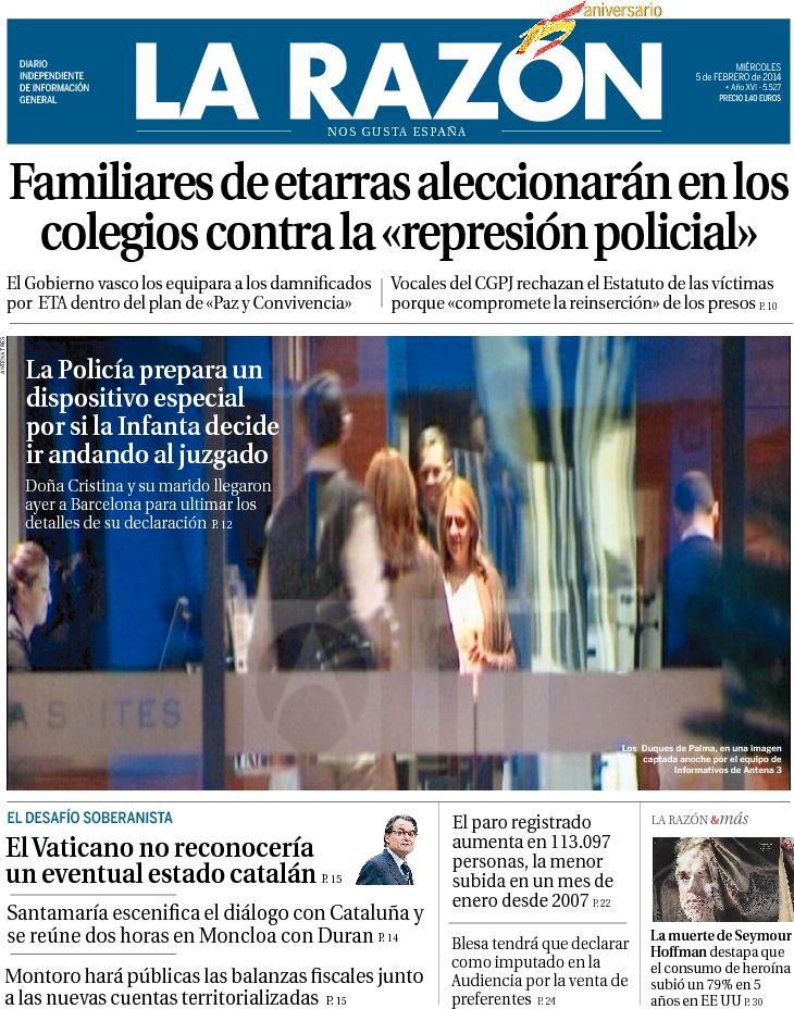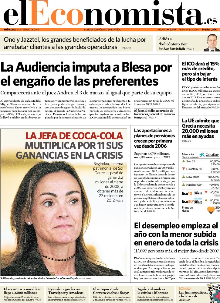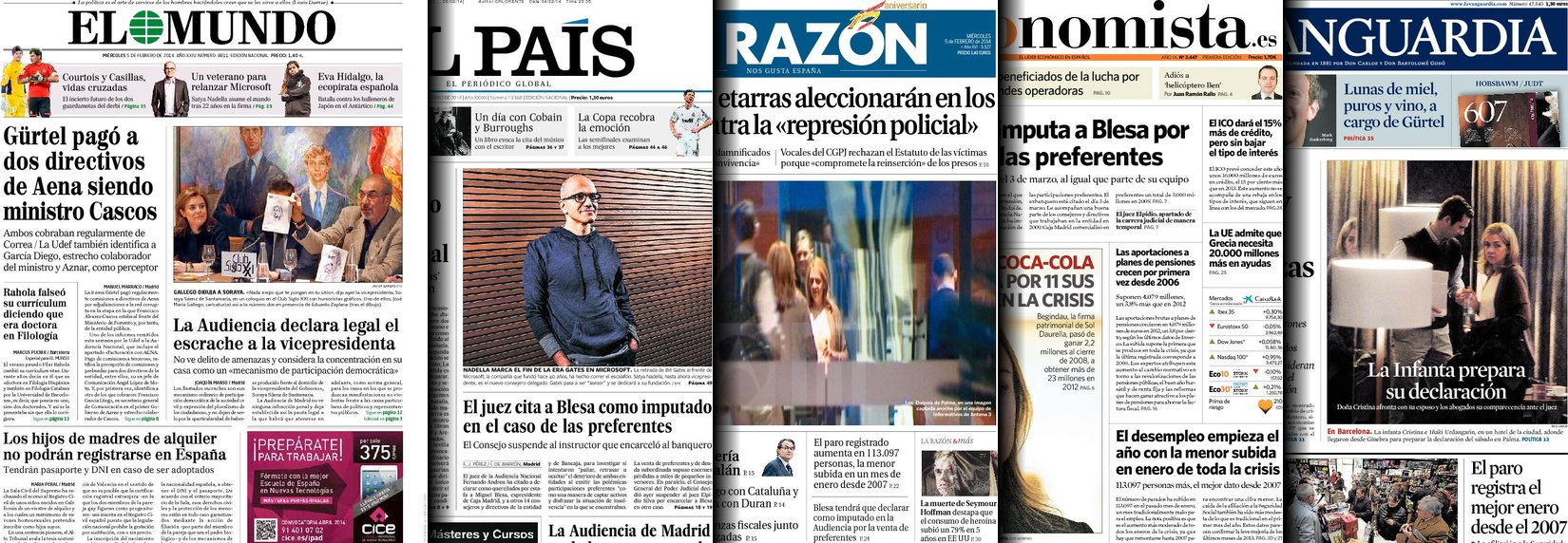 Portadas de los diarios El Mundo, El País, ABC, La Razón, La Vanguardia, El Periódico, Cinco Días, El Economista, Expansión, Marca, As, Mundo Deportivo y Sport.