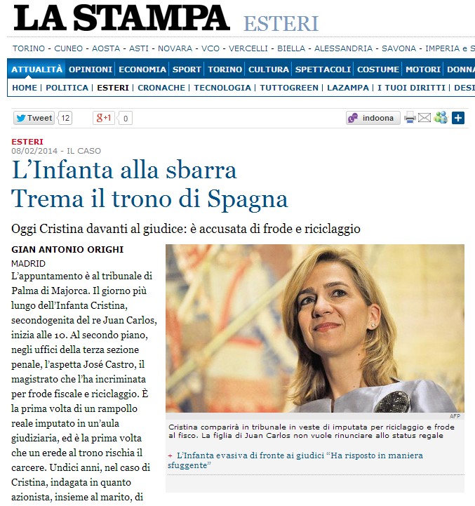 La noticia de la declaración de la infanta Cristina ha dado la vuelta al mundo.