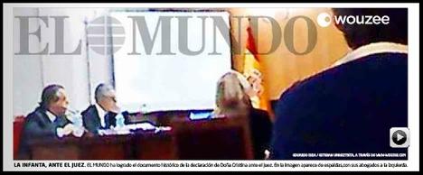 Pese a todo, el diario El Mundo ha publicado este domingo -en su segunda edición- una imagen de la infanta de espaldas declarando ante el juez. Una imagen con muy poca calidad, pero lo suficientemente expresa como para reconocer que se trataba del interrogatorio de la infanta.