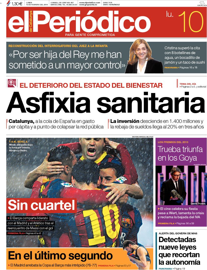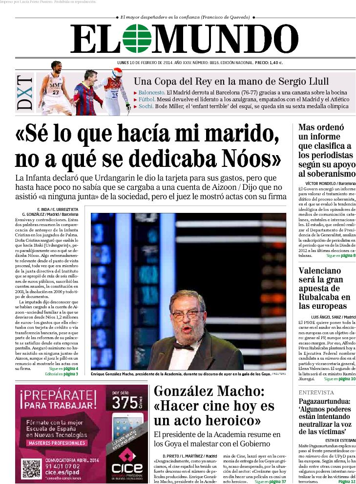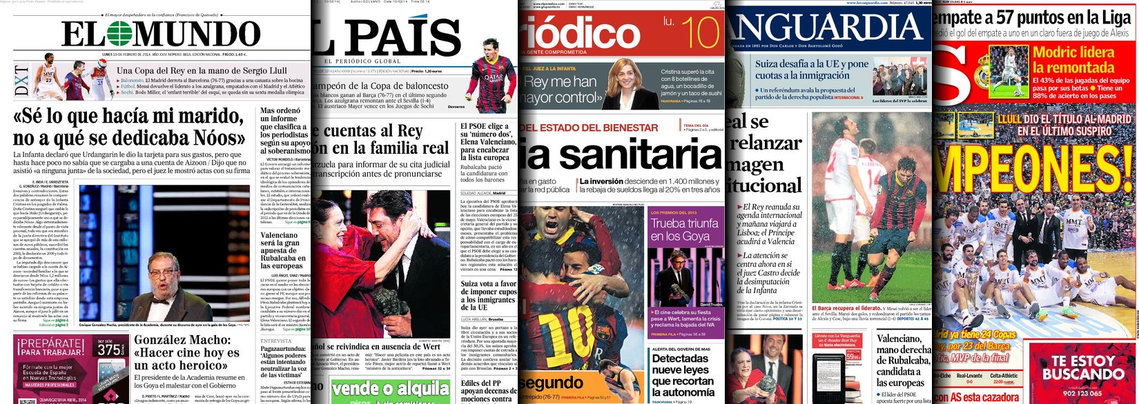Portadas de los diarios El Mundo, El País, ABC, La Vanguardia, El Periódico, Cinco Días, El Economista, Expansión, Marca, As, Mundo Deportivo y Sport.