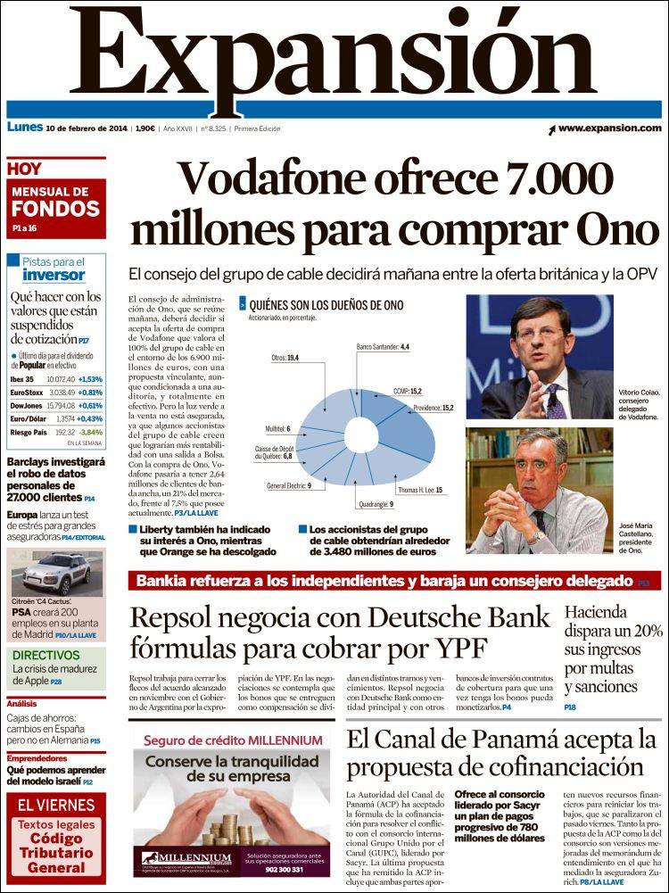 "Vodafone ofrece 7.000 millones para comprar ONO"