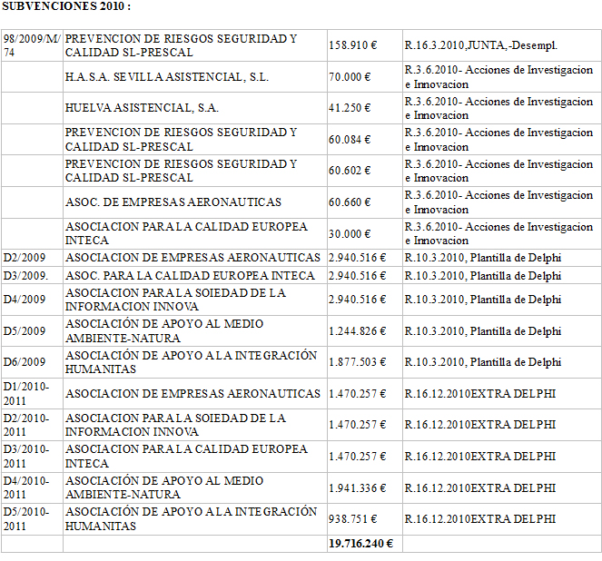 En el conflicto sobre la recolocación de los trabajadores de Delphi, sin consideración al derroche de dinero que esto ha producido, además de las cantidades que ya para este concepto venia recibiendo, FUNDACION ANDALUZA DE FONDO DE FORMACION Y EMPLEO -la aparentemente encargada de la formación de estos trabajadores-, le concede a las empresas de OJEDA AVILES, dos ayudas extraordinarias por un total de 19.234.737 euros: Resolución. 10.3.2010 : 11.943.876 euros y R.16.12.2010: 7.290.861 euros-.