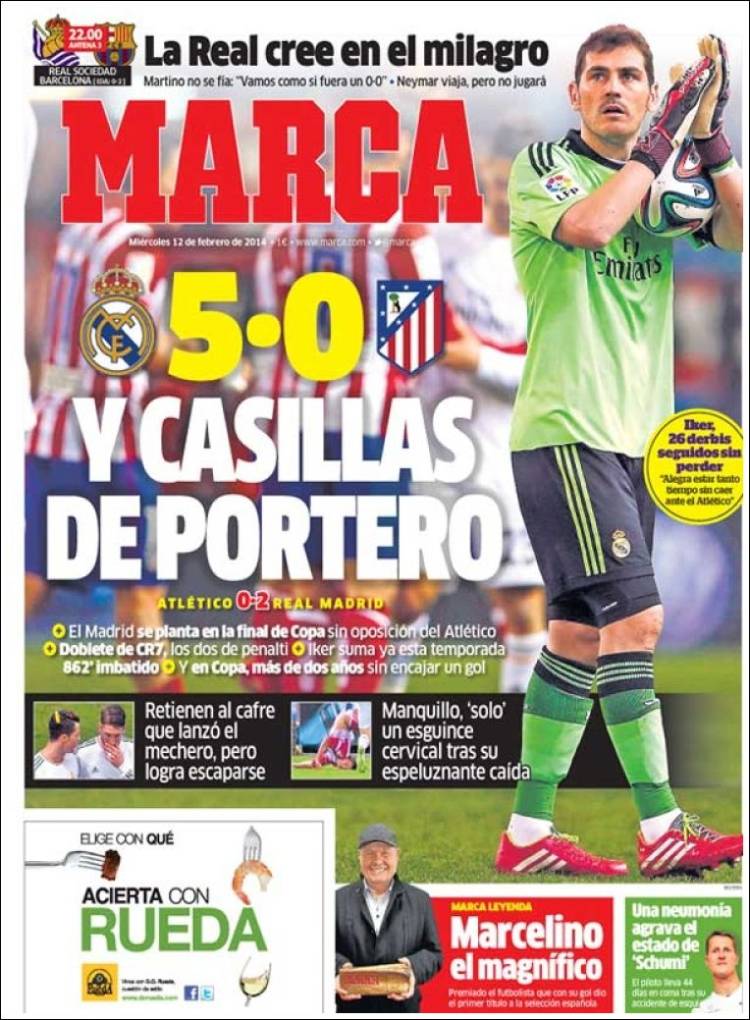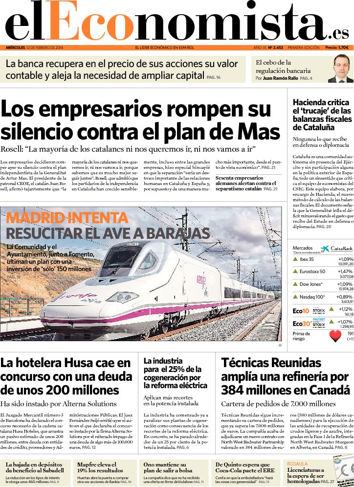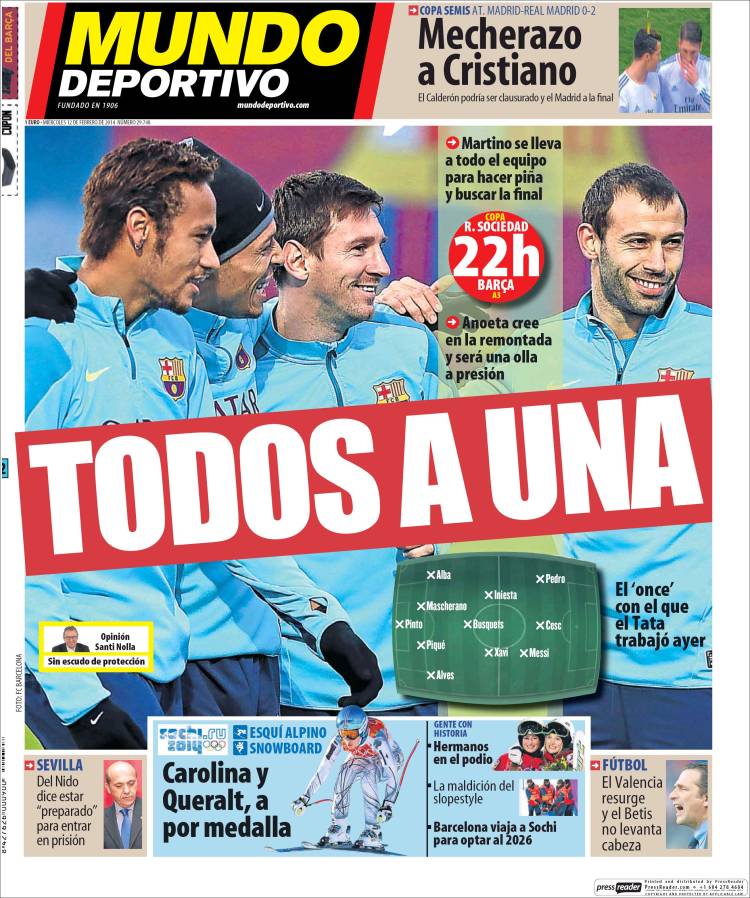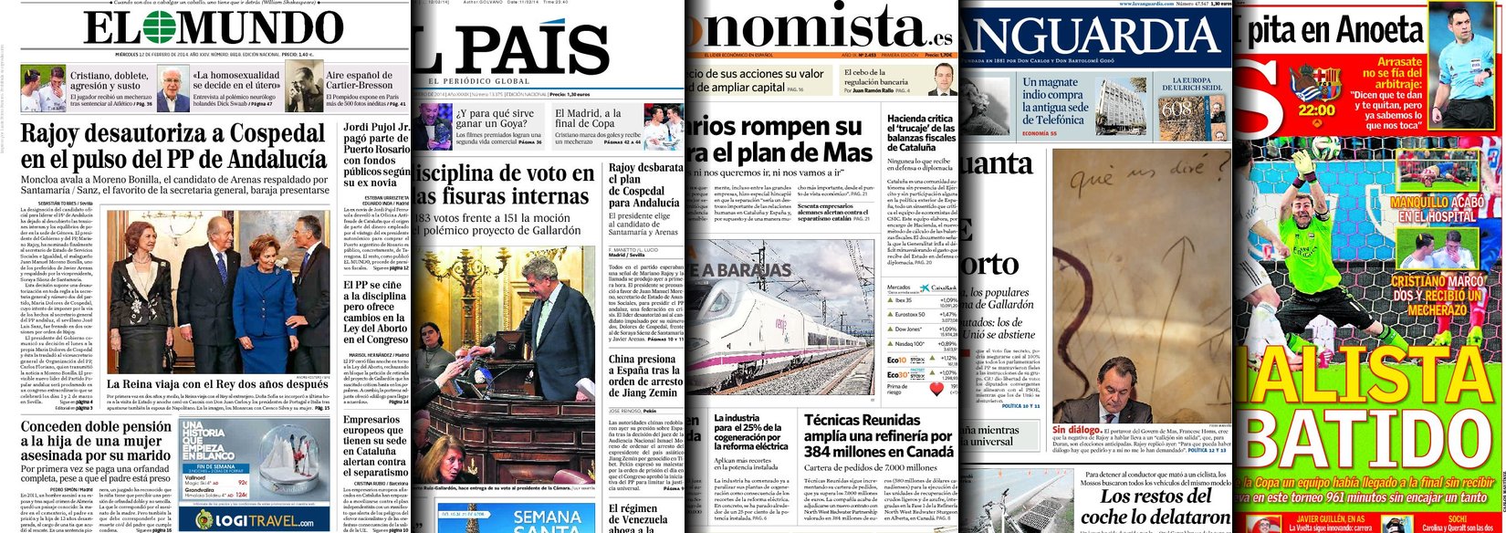 Portadas de los diarios El Mundo, El País, ABC, La Razón, La Vanguardia, El Periódico, Cinco Días, El Economista, Expansión, Marca, As, Mundo Deportivo y Sport.