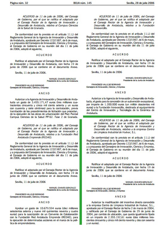 Posteriormente, la Junta de Andalucía volvió a anunciar que se concede una subvención, como si fuese nueva, al municipio de Las Cabezas que "con una inversión de 6,8 millones de euros y 34 empleos de nueva creación, está promovido por la sociedad Centro de Limpieza Industrial Huévar. Esta empresa se dedica a prestar servicios de limpieza y lavandería industrial para los sectores sanitario, hostelero y turístico, y también tiene previsto desarrollar una oferta de alquiler para suministro, limpieza y reposición de ropa, línea de trabajo con buenas perspectivas de futuro y fuerte implantación en Estados Unidos y diversos países de la Unión Europea. La ayuda directa autorizada por el Consejo es de 2,3 millones de euros".