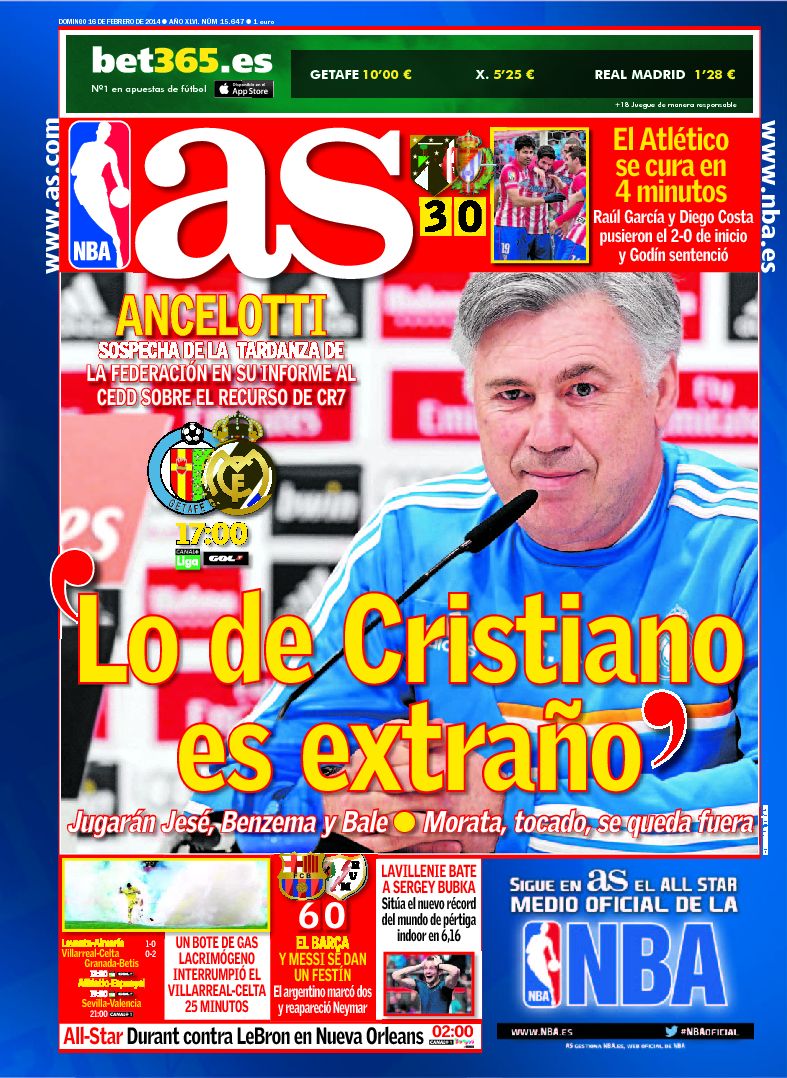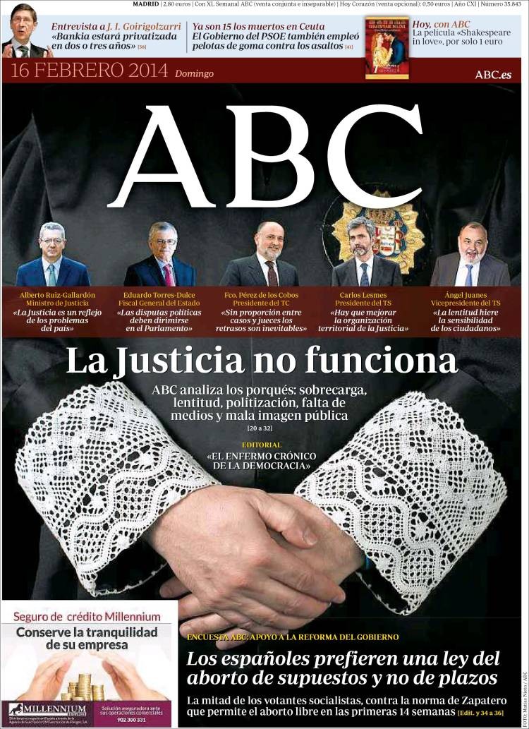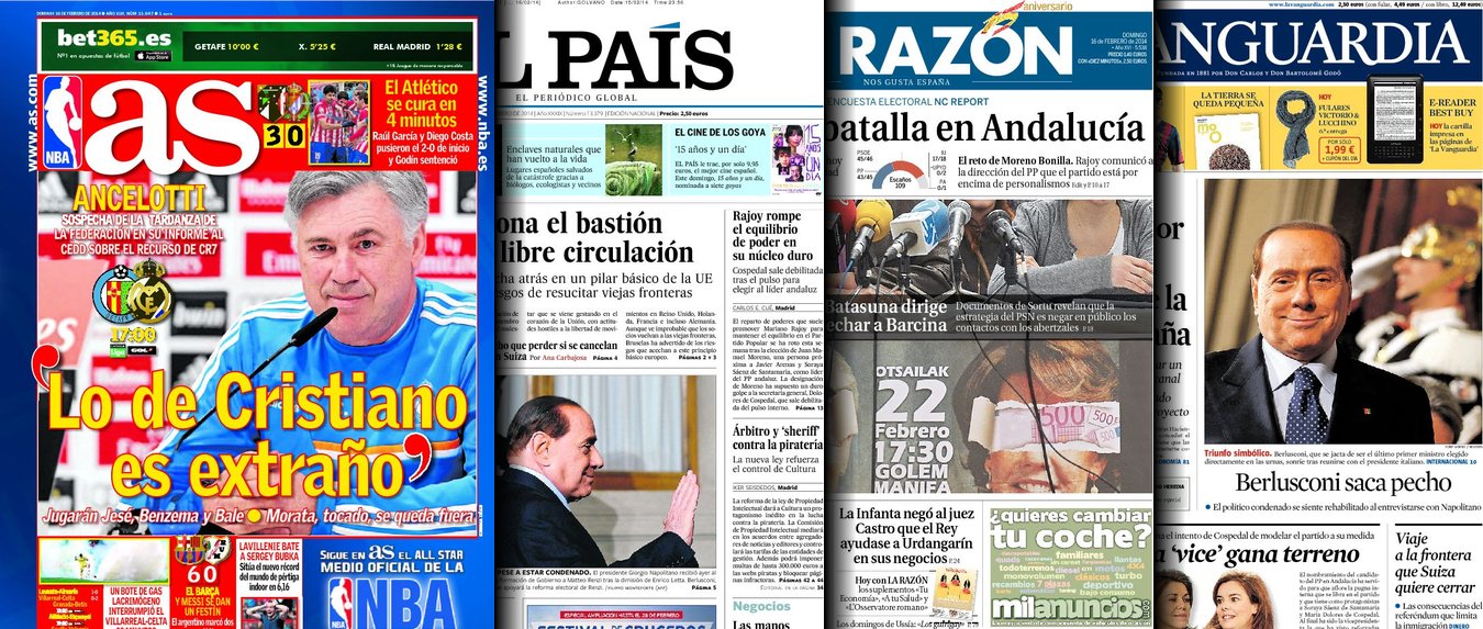 Portadas de los diarios El País, ABC, La Razón, As y La Vanguardia.