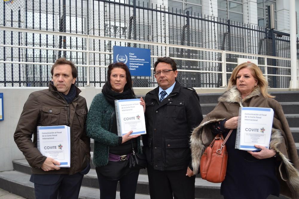 La presidenta de Covite, Consuelo Ordóñez, ha realizado el viaje con otras víctimas de ETA: Josu Puelles, hermano del policía nacional asesinado por ETA Eduardo Puelles; Toñi Santiago y José Joaquín Martínez, padres de Silvia Martínez, la niña asesinada en agosto de 2002 en Santa Pola cuando tenía 6 años. La delegación de víctimas quiere solicitar a la Fiscalía de la Corte Penal Internacional de La Haya que investigue a tres dirigentes de Batasuna, entre ellos Arnaldo Otegi, y a ocho destacados miembros de ETA por crímenes de lesa humanidad, según informa Efe. En un extenso escrito jurídico justifican que las once personas que señalan han sido destacados dirigentes de "la organización ETA-Batasuna" a partir del 1 de junio de 2002, fecha en que España ratificó el Estatuto de Roma de la Corte Penal Internacional.