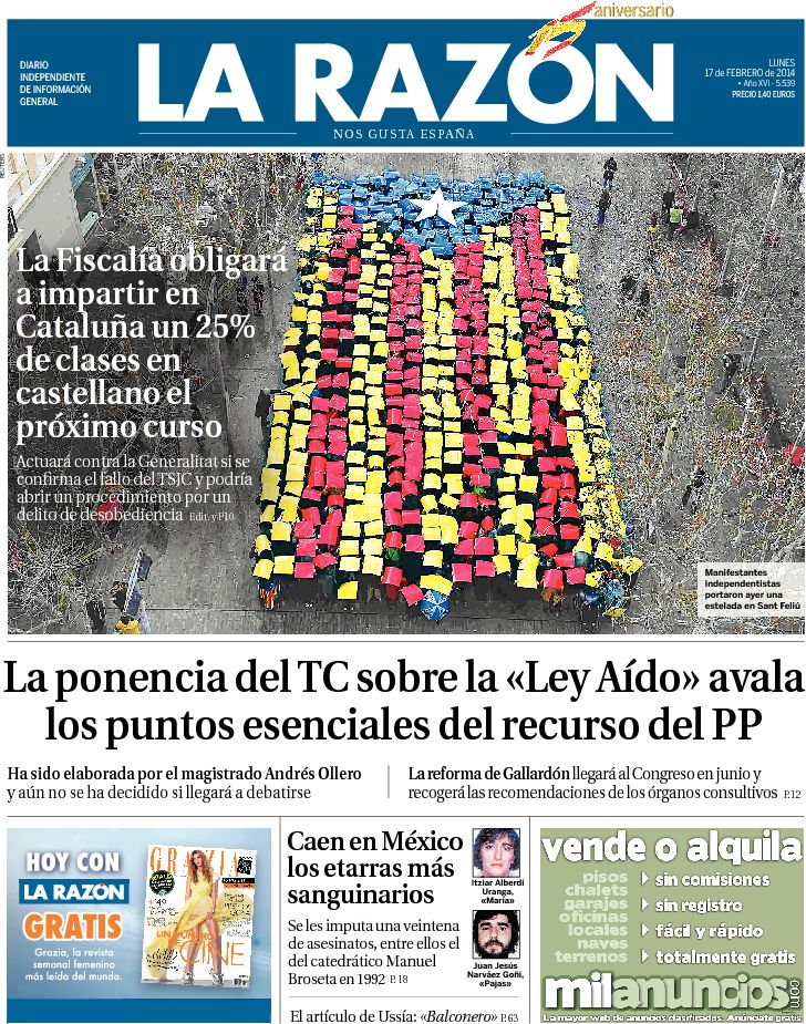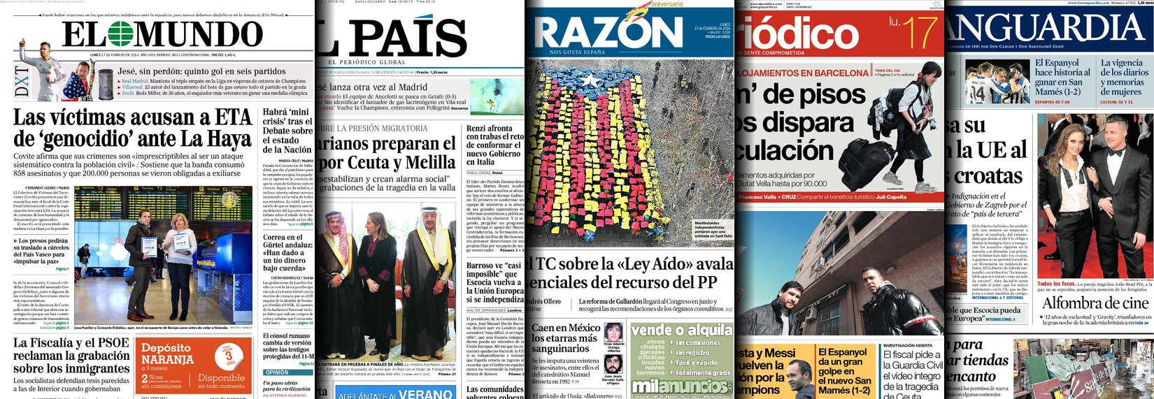 Portadas de los diarios El Mundo, El País, ABC, La Razón, La Vanguardia, El Periódico, Cinco Días, El Economista, Expansión, Marca, As, Mundo Deportivo y Sport.