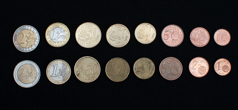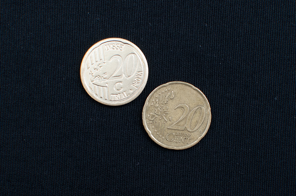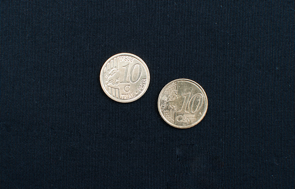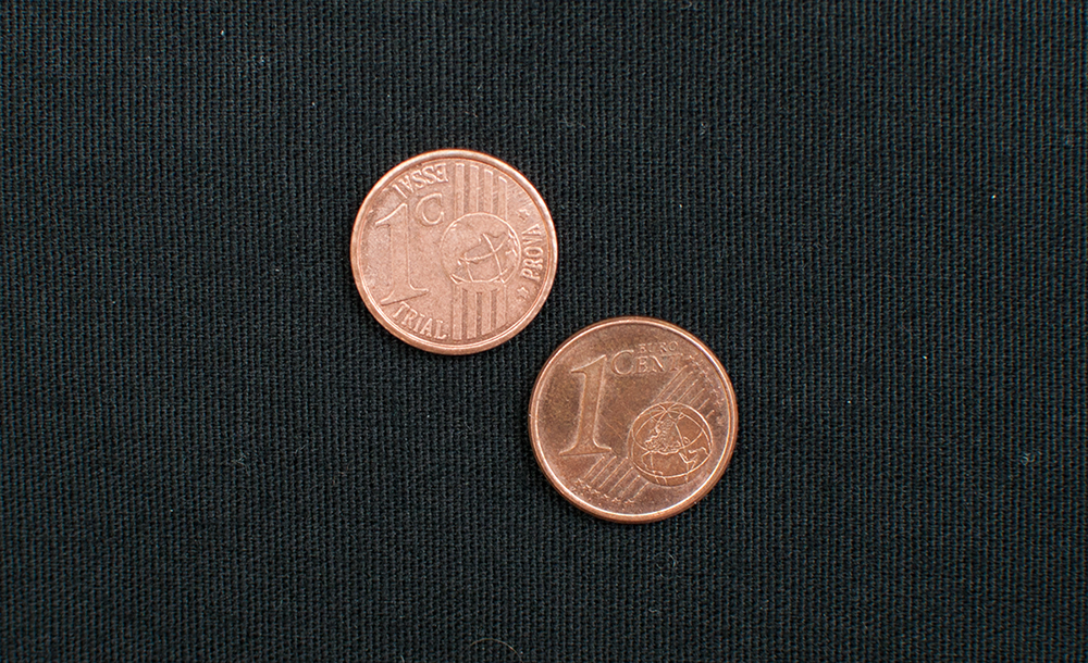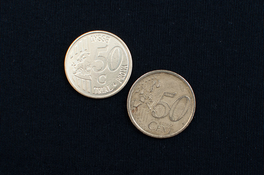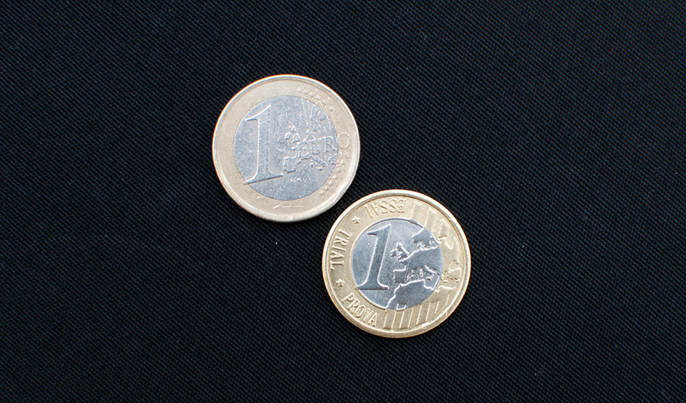Como en las de anteriores cantidades, la réplica falsa de la moneda de 1 euro, presenta la misma variante tras el mapa de Europa. En esta ocasión, la réplica es la que figura en la parte inferior de la fotografía