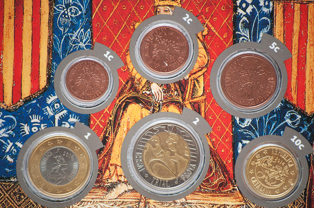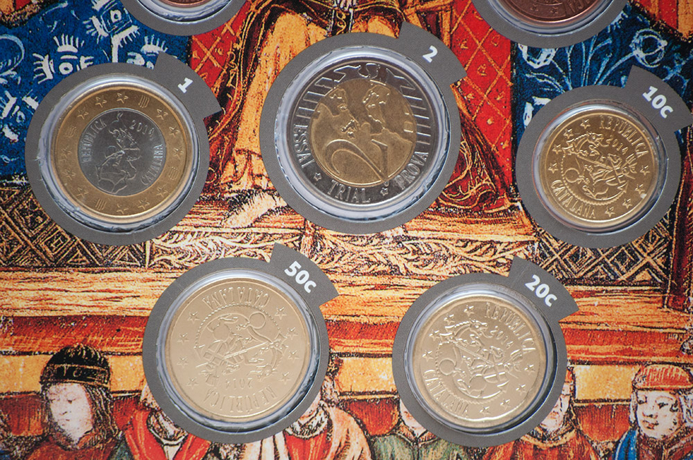 Lanzan 8.000 monedas falsas de euros catalanes. Una iniciativa privada que ya circula con éxito en internet.