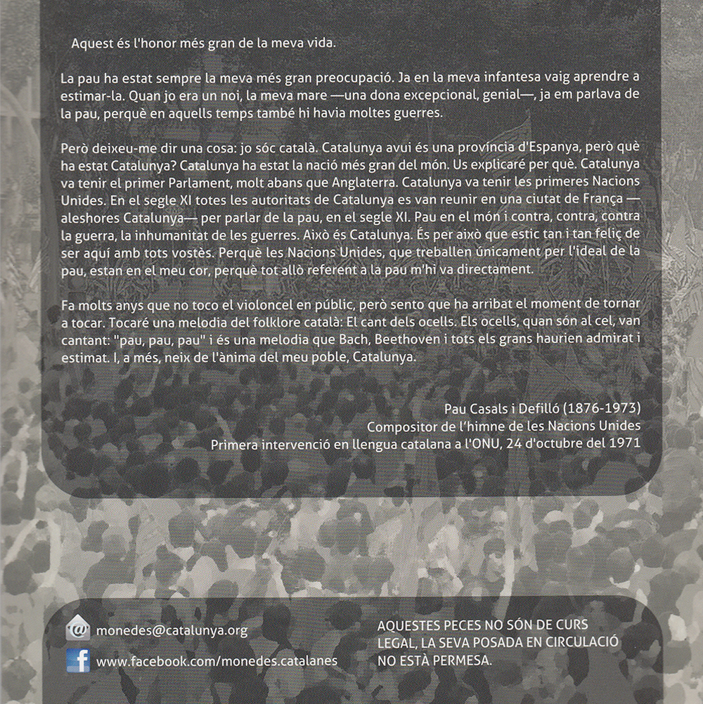 Por el reverso, en lugar de encontrar la foto del Rey y, como dicen sus impulsores, "a falta de un presidente de la República catalana", han optado por estampar el ave Fénix. Un símbolo muy empleado entre los separatistas radicales