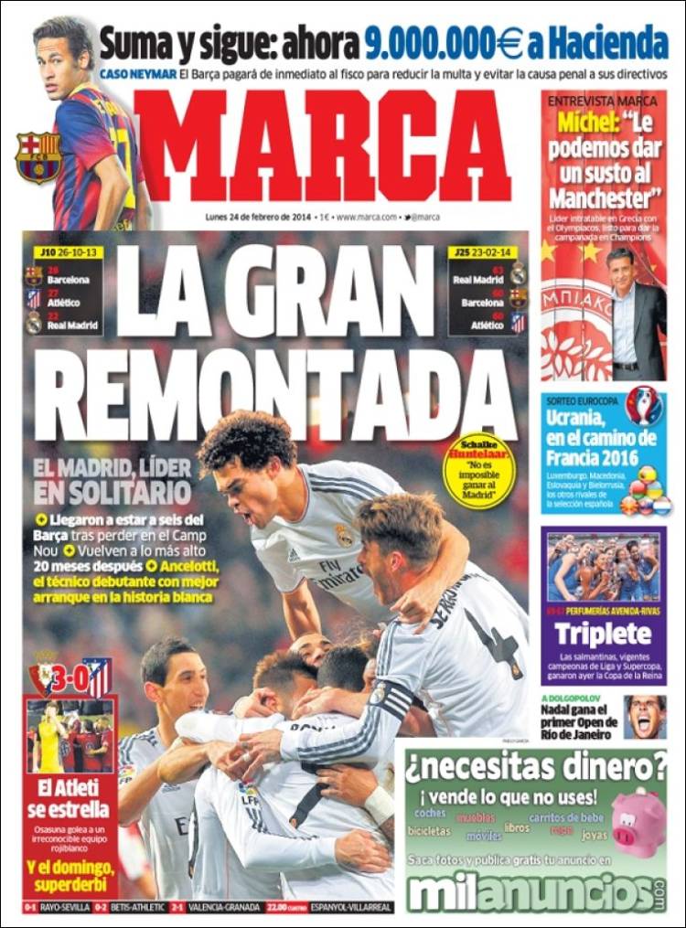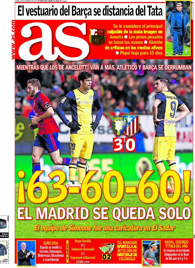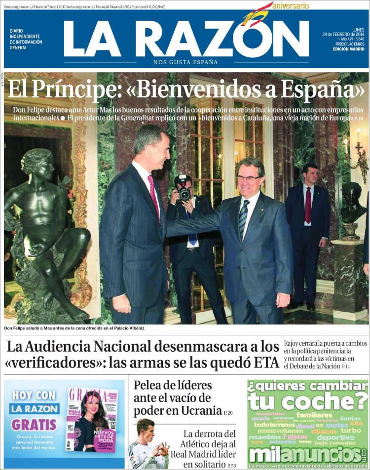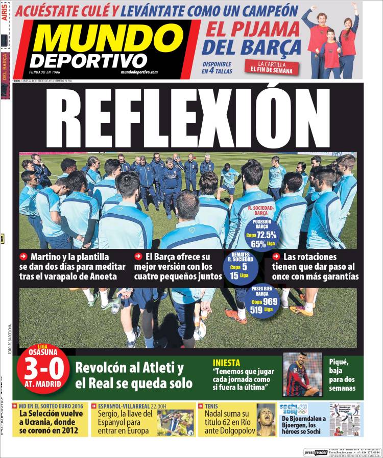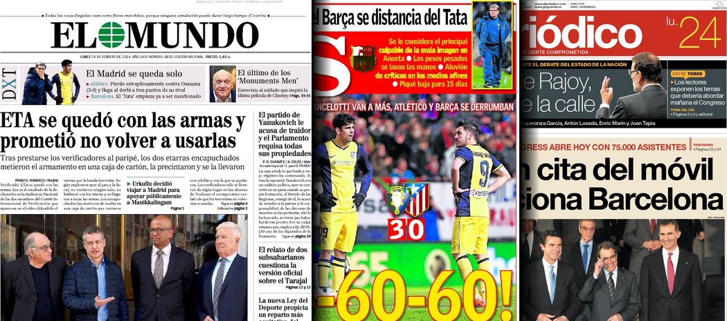 Portadas de los diarios El Mundo, El País, ABC, La Razón, La Vanguardia, El Periódico, Cinco Días, El Economista, Expansión, Marca, As, Mundo Deportivo y Sport.