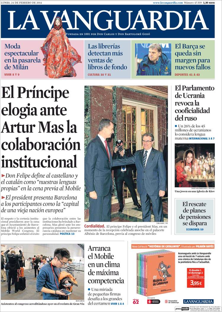 "El Príncipe elogia ante Artur Mas la colaboración institucional"