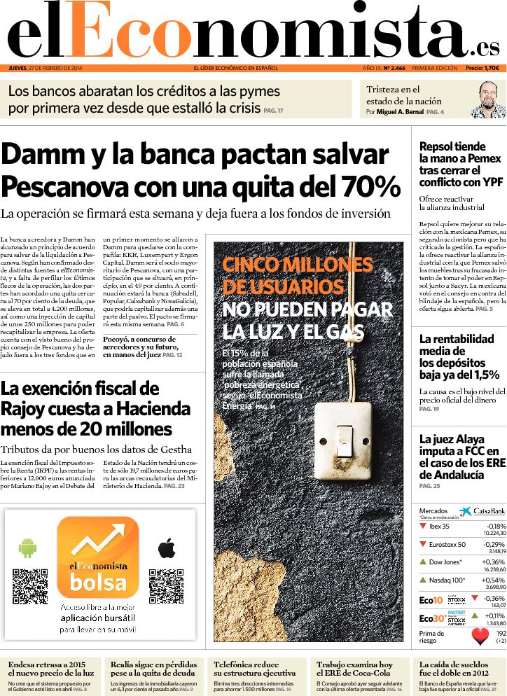 "Damm y la banca pactan salvar Pescanova con una quita del 70%"