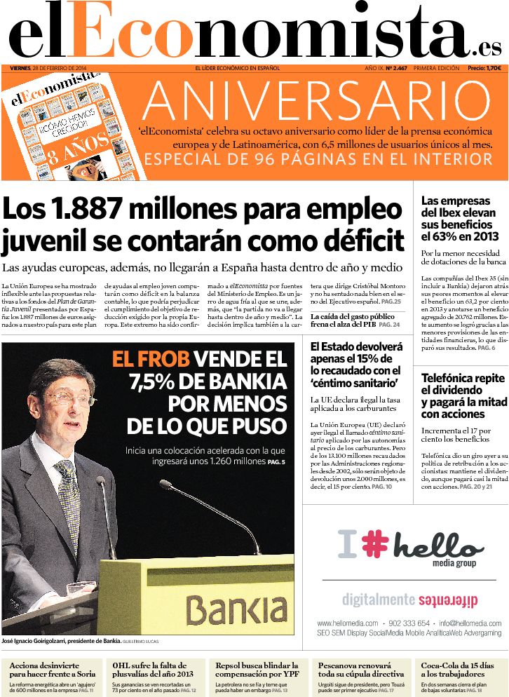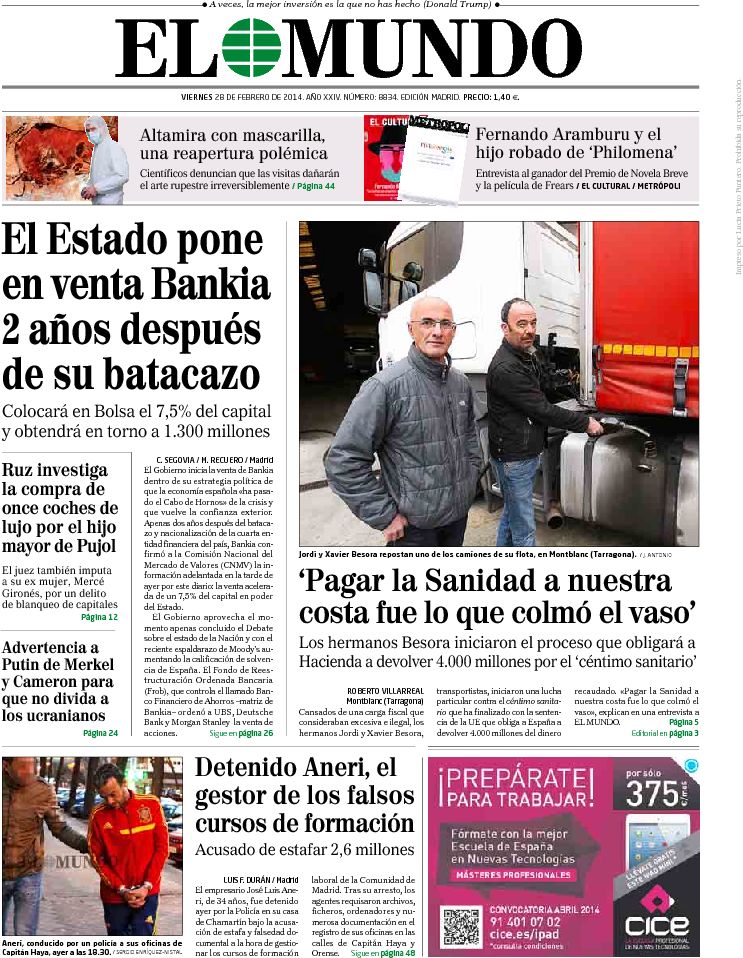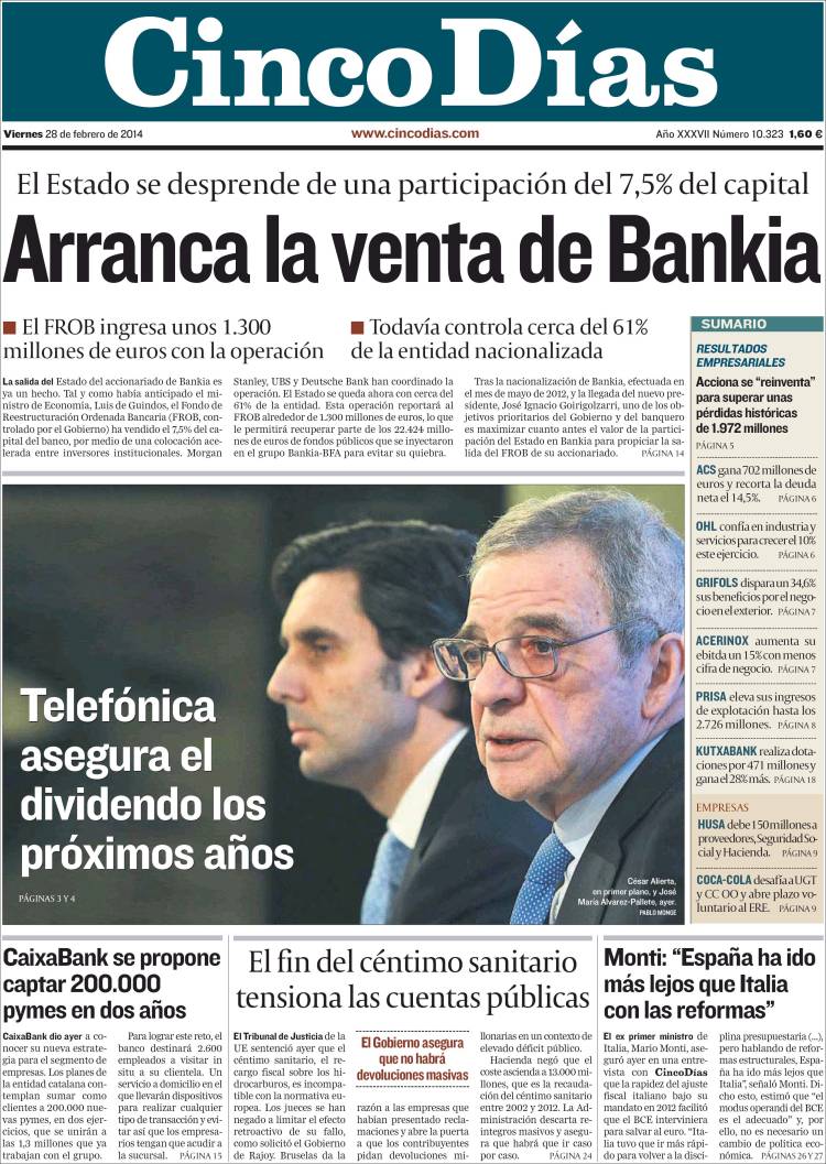 "El Estado pone en venta Bankia 2 años después de su batacazo"