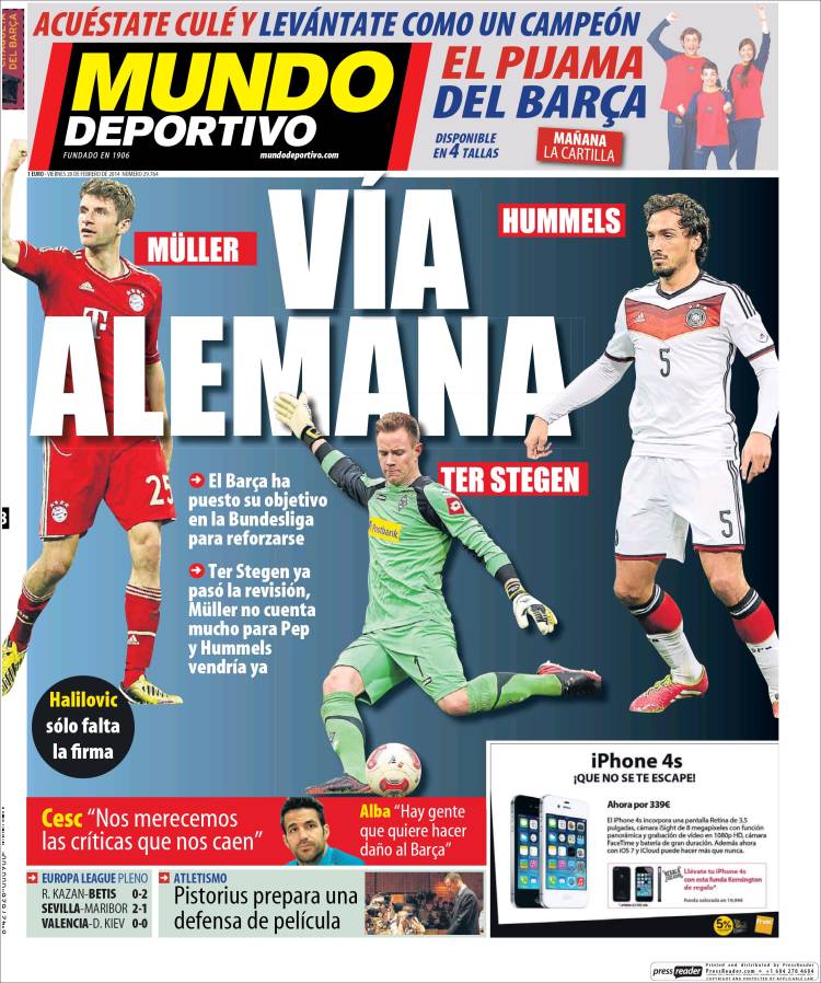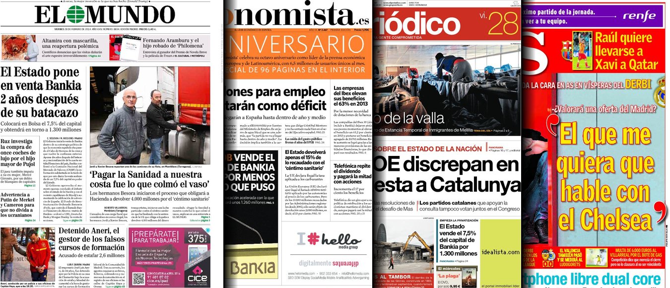 Portadas de los diarios El Mundo, El País, ABC, La Razón, La Vanguardia, El Periódico, Cinco Días, El Economista, Expansión, Marca, As, Mundo Deportivo y Sport.