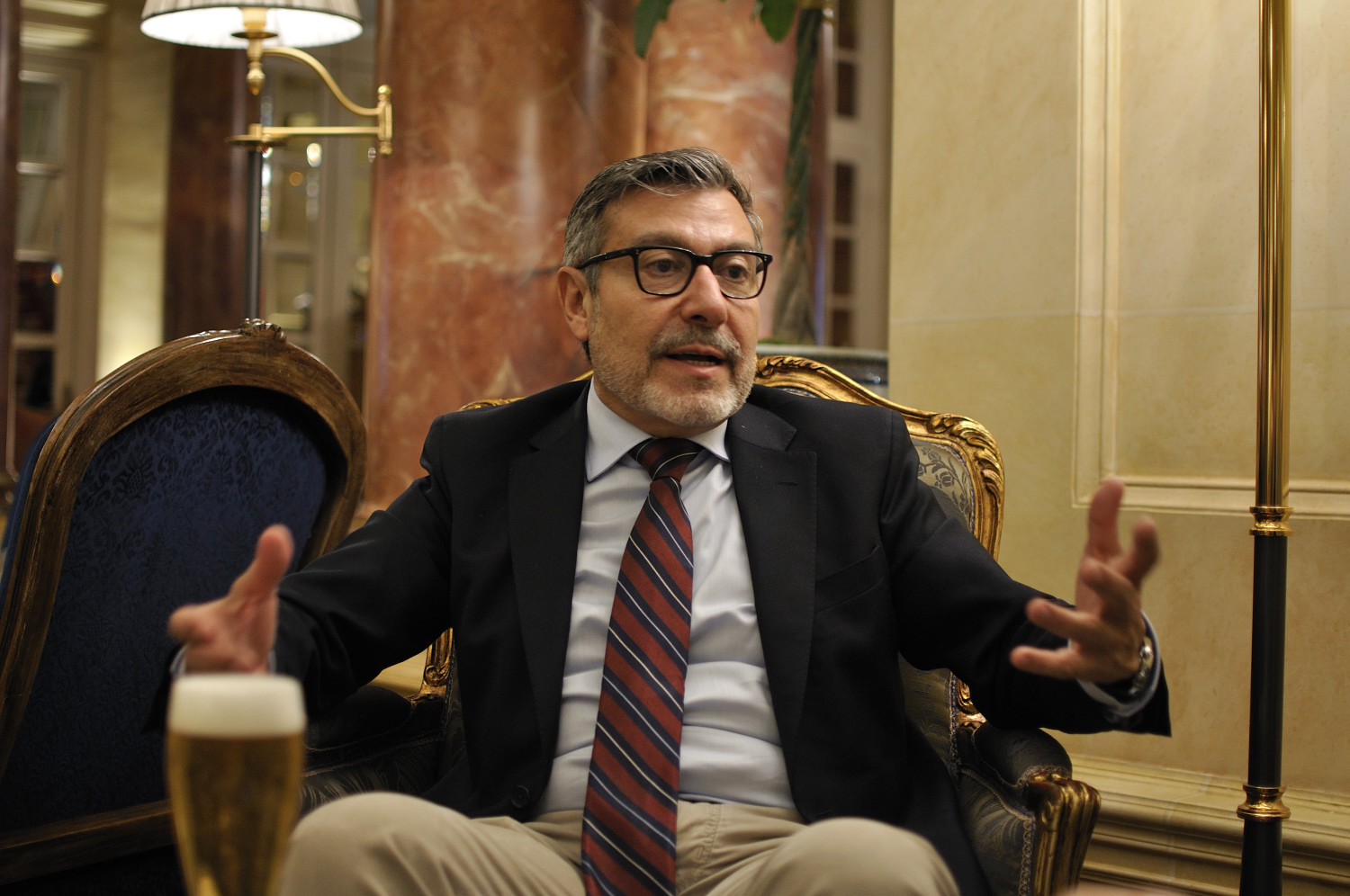 El lobby del Ritz parece, por momentos, un circo de varias pistas. Cómicos de acreditada fama van desfilando hacia un lugar reservado para, nos cuentan, presentar una nueva serie de televisión, mientras duros ejecutivos de varias nacionalidades despliegan sus maletines entre café y café. En esas aparece maleta en mano, recién desembarcado de Atocha, Antoni Asunción. Está como en casa, como le hace notar la agradable y profesional camarera que nos atiende. Luego el propio Asunción nos confesará que era su cuartel general en su época de ministro entre el 93 y el 94. Por ello conoce bien al personal, con el que llegó a librar alguna batalla sindical. Cómodamente instalados, comienza la charla mientras el pianista va desgranando piezas, algunas (ya lo verán) pareciera que elegidas para la ocasión...