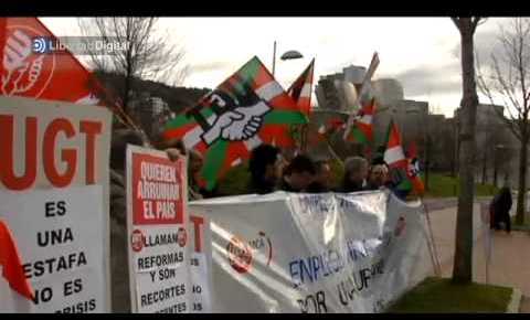 Varios manifestantes se han concentrado frente al Museo Guggenheim aprovechando la visita del Rey Juan Carlos para protestar contra el FMI, la Comisión Europea y el Gobierno.