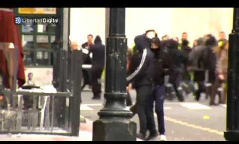 Varios radicales destrozan tiendas y bancos en el centro de Bilbao durante la visita del Rey