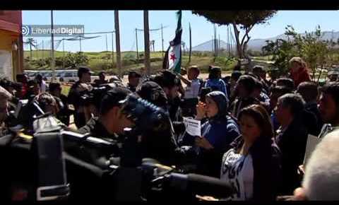 Decenas de melillenses se han concentrado a las puertas del CETI durante la visita del ministro de Interior, Jorge Fernández Diaz, para protestar por la falta de investigación por la muerte de dos jóvenes de Melilla que fallecieron durante un encontronazo con las fuerzas de seguridad marroquíes, mientras pescaban mar adentro.