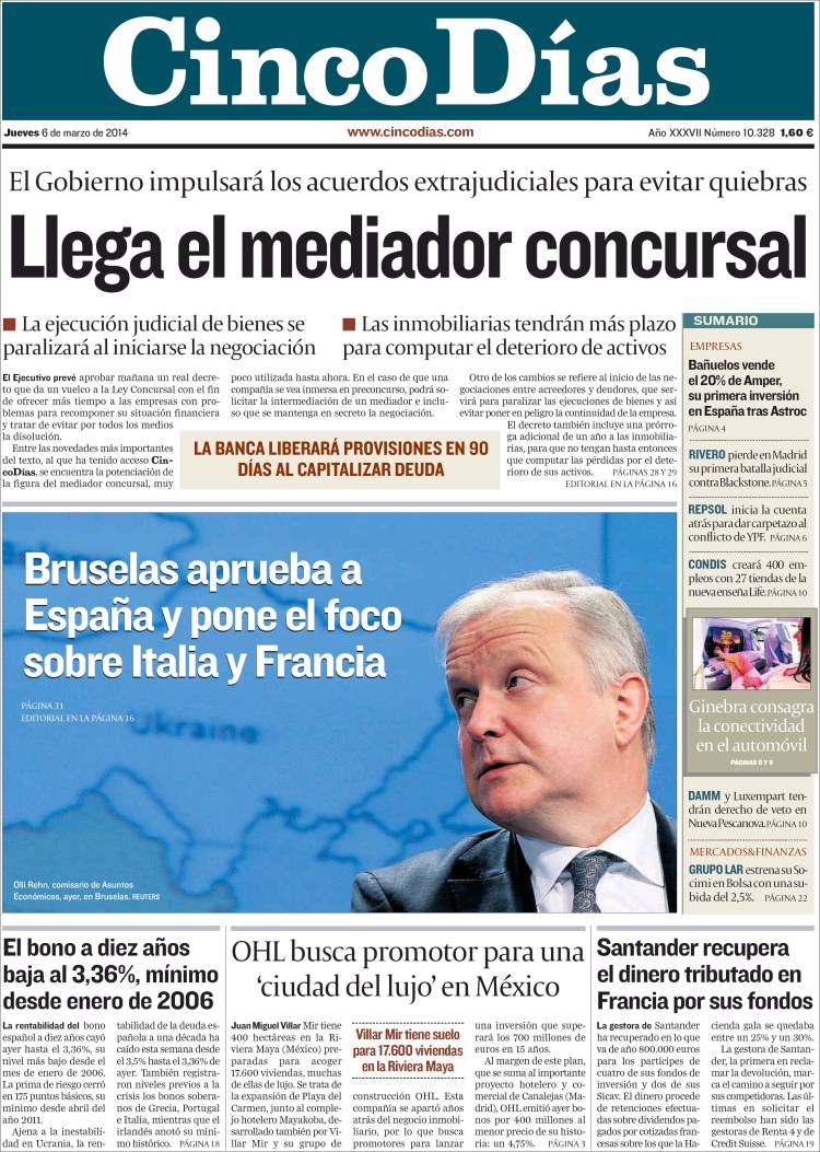 "Bruselas saca a España de los países con más riesgo"