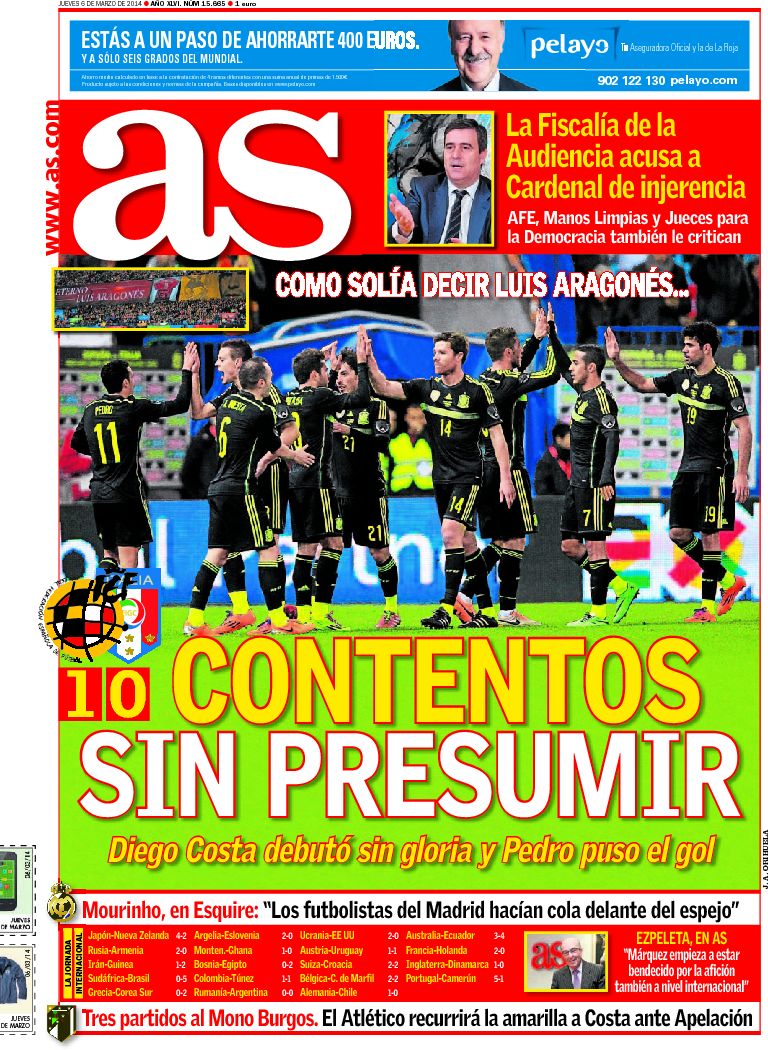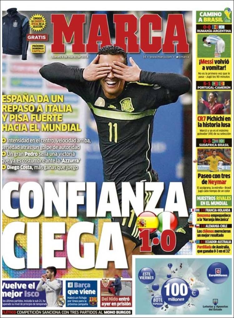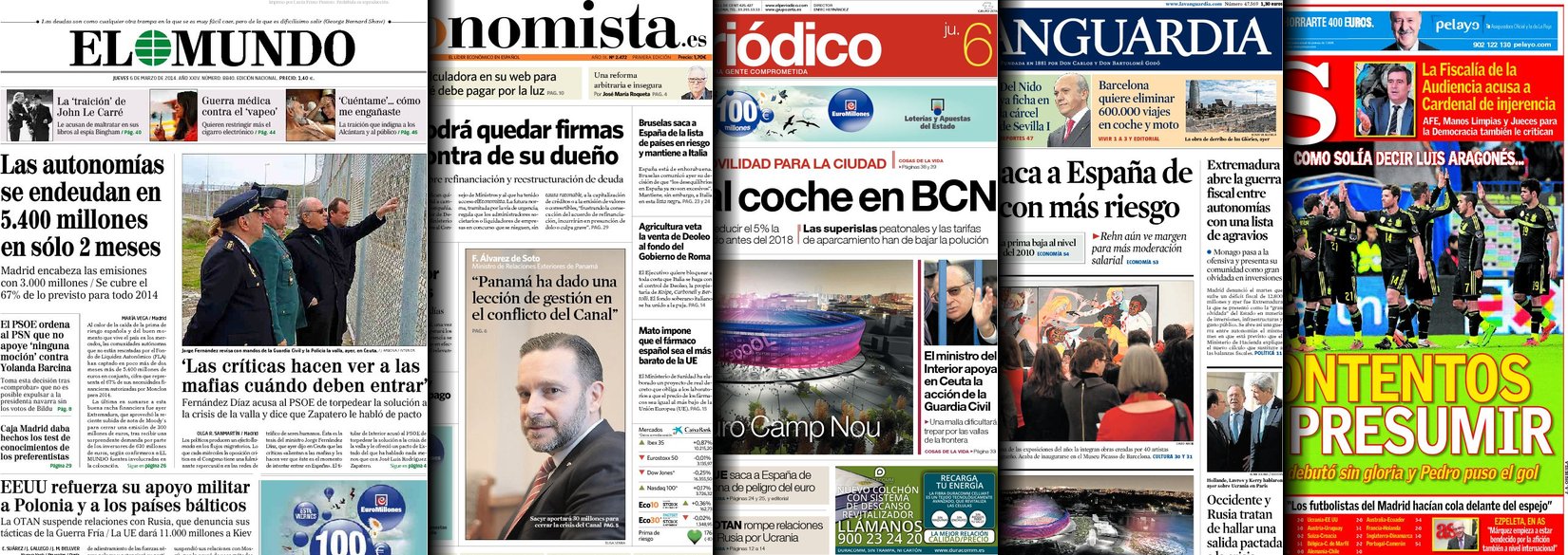 Portadas de los diarios El Mundo, El País, ABC, La Razón, La Vanguardia, El Periódico, Cinco Días, El Economista, Expansión, Marca, As, Mundo Deportivo y Sport.