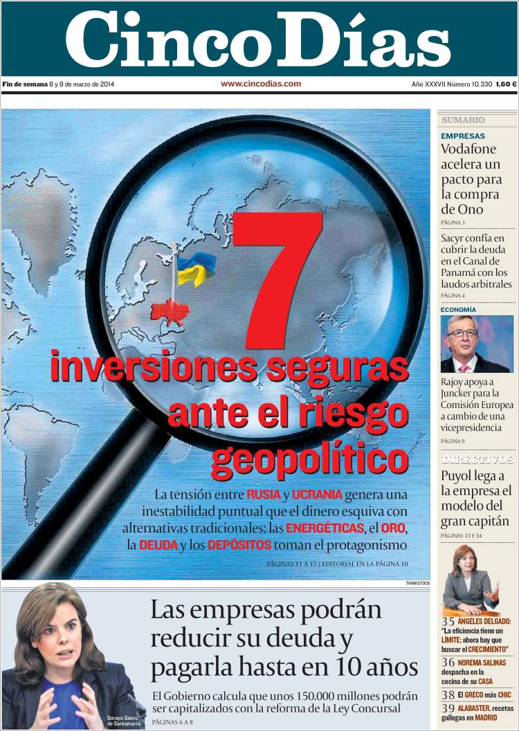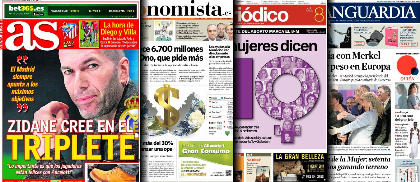 Portadas de los diarios ABC, As, El Periódico, El Economista y La Vanguardia.