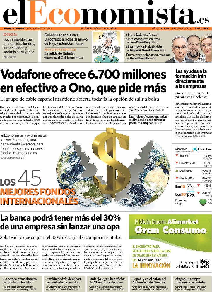 "Vodafone ofrece 6.700 millones en efectivo a Ono, que pide más"