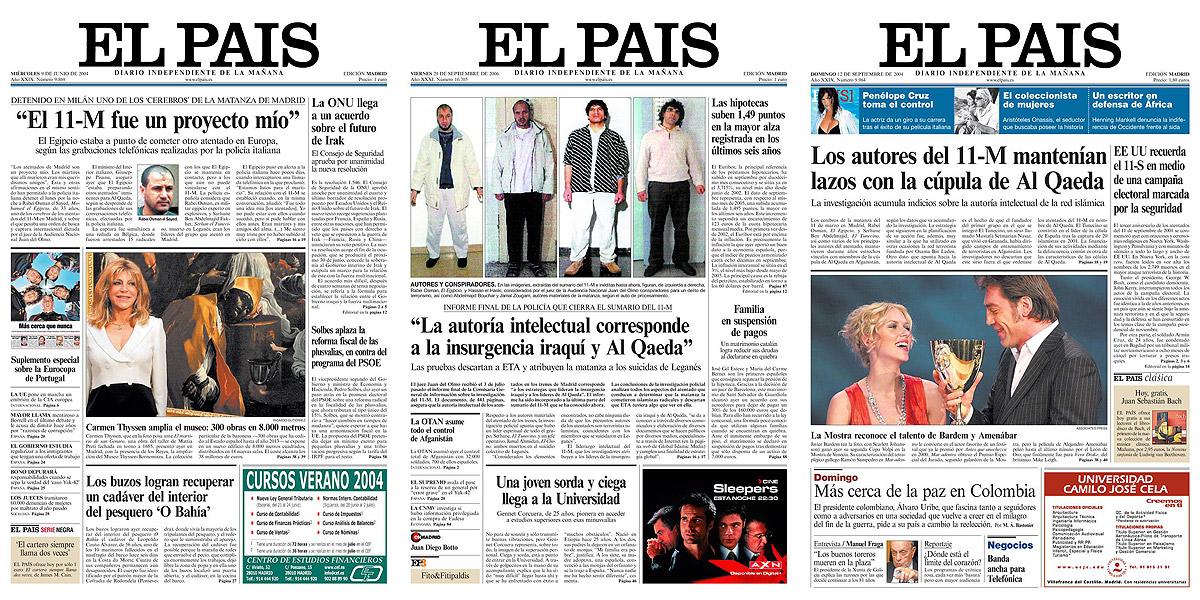 Así se hacía a partir del informe policial de conclusiones al que El País daba honores de portada el 29 de septiembre, con imágenes incluidas de El Egipcio y El Haski, acompañados por los presuntos autores materiales: Bouchar y Zougam.