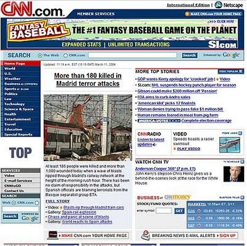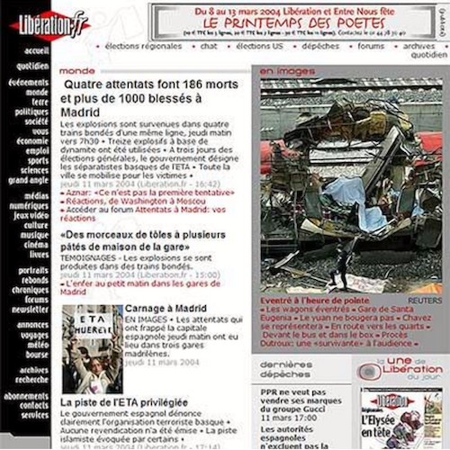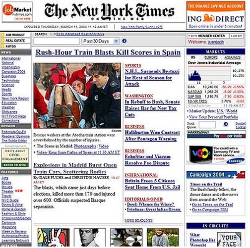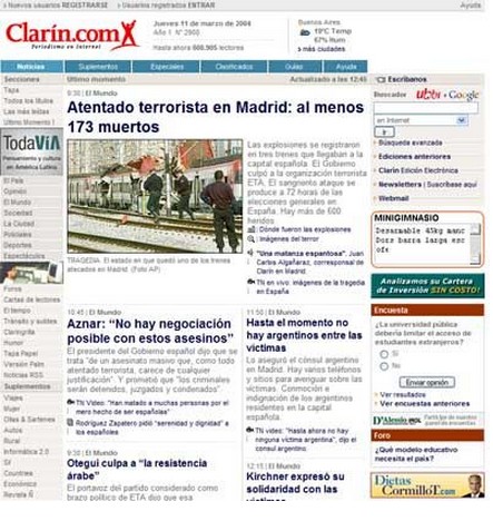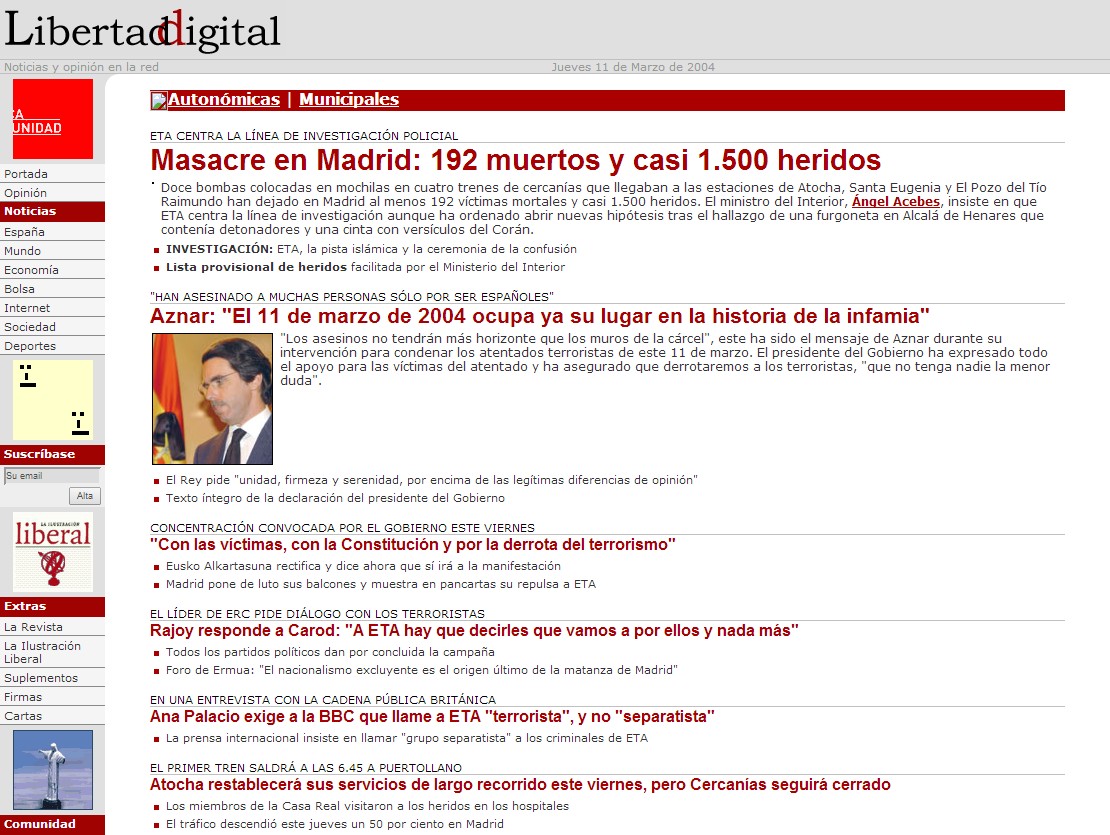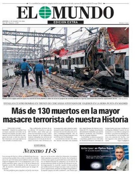 El 11 de marzo de 2004 los periódicos nacionales sacaban una edición especial al mediodía para informar de los atentados. La masacre copaba ese mismo día la prensa internacional en sus ediciones digitales.