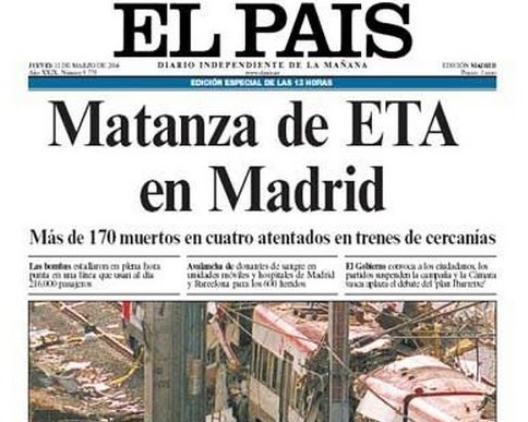 El País, el único que llevó ETA en el titular en la edición especial del 11-M.