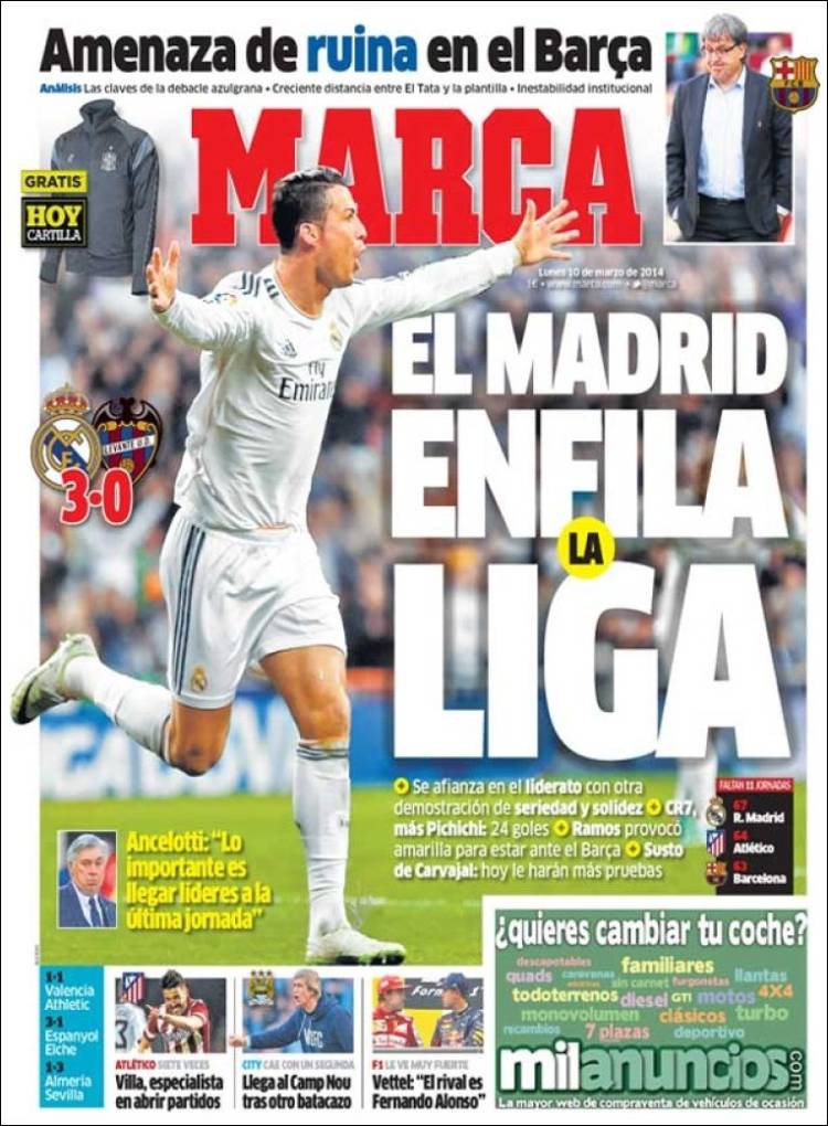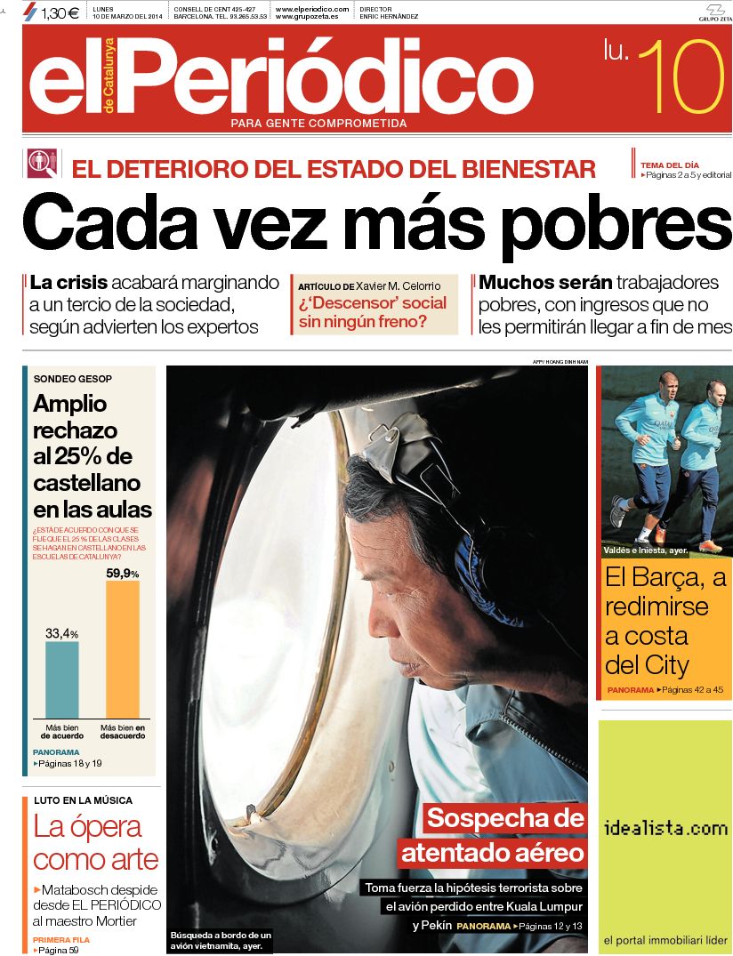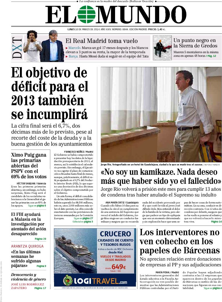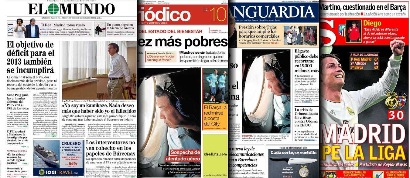 Portadas de los diarios El Mundo, El País, ABC, La Razón, La Vanguardia, El Periódico, Cinco Días, El Economista, Expansión, Marca, As, Mundo Deportivo y Sport.