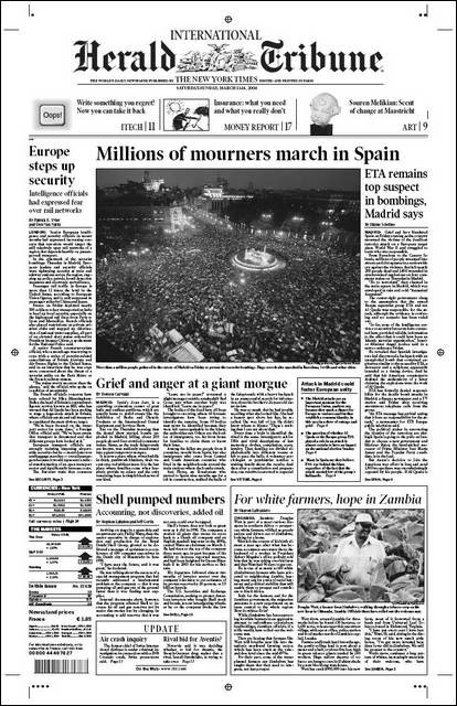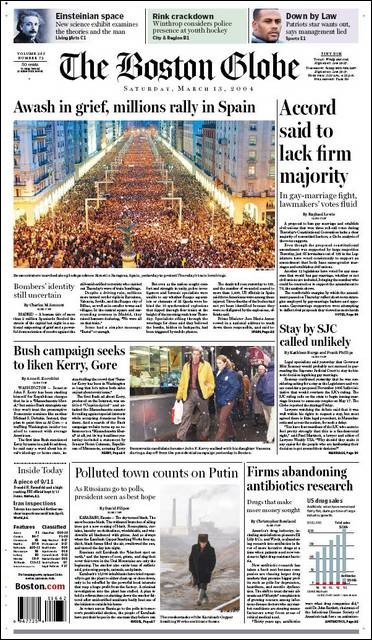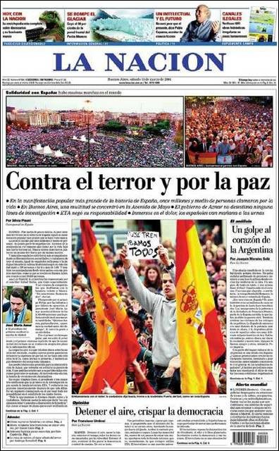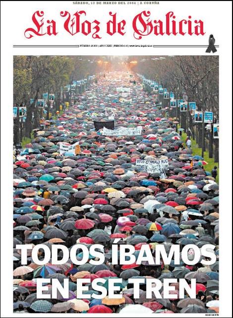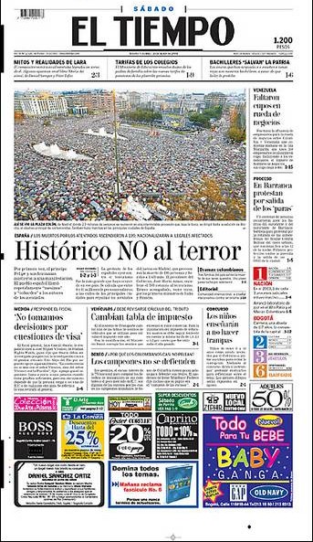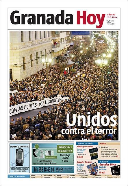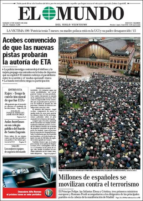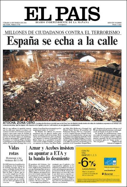 El 13 de marzo de 2004, en la jornada de reflexión, la prensa de papel llevó a sus portadas la masiva manifestación en Madrid.