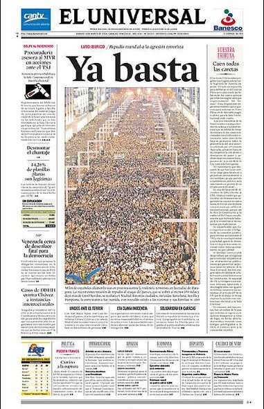 La multitudinaria manifestación, en la portada de El País. También la pista de ETA y el desmentido de la banda terrorista.