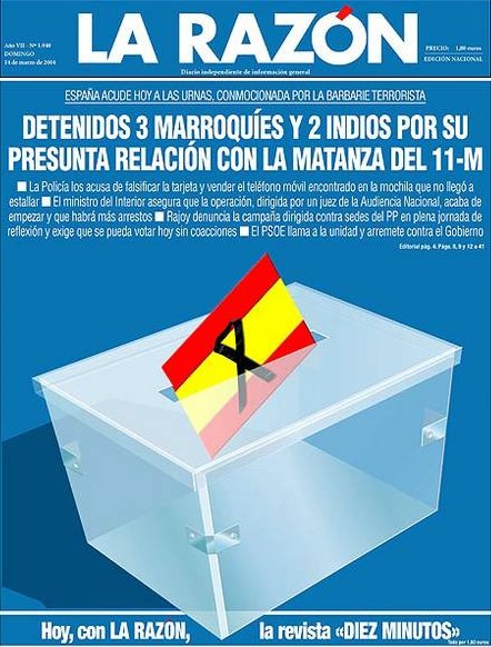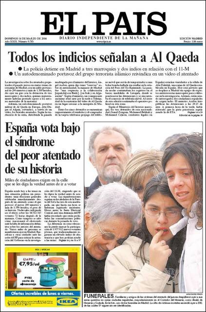 El Periódico también afirmaba de forma categórica que Al Qaeda cometió la masacre. Pedía acudir a las urnas.