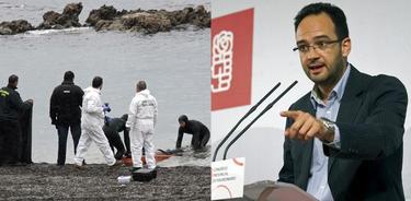 A la izquierda, la Guardia Civil recupera en cadaver en Ceuta. A la derecha, Antonio Hernando. | Archivo